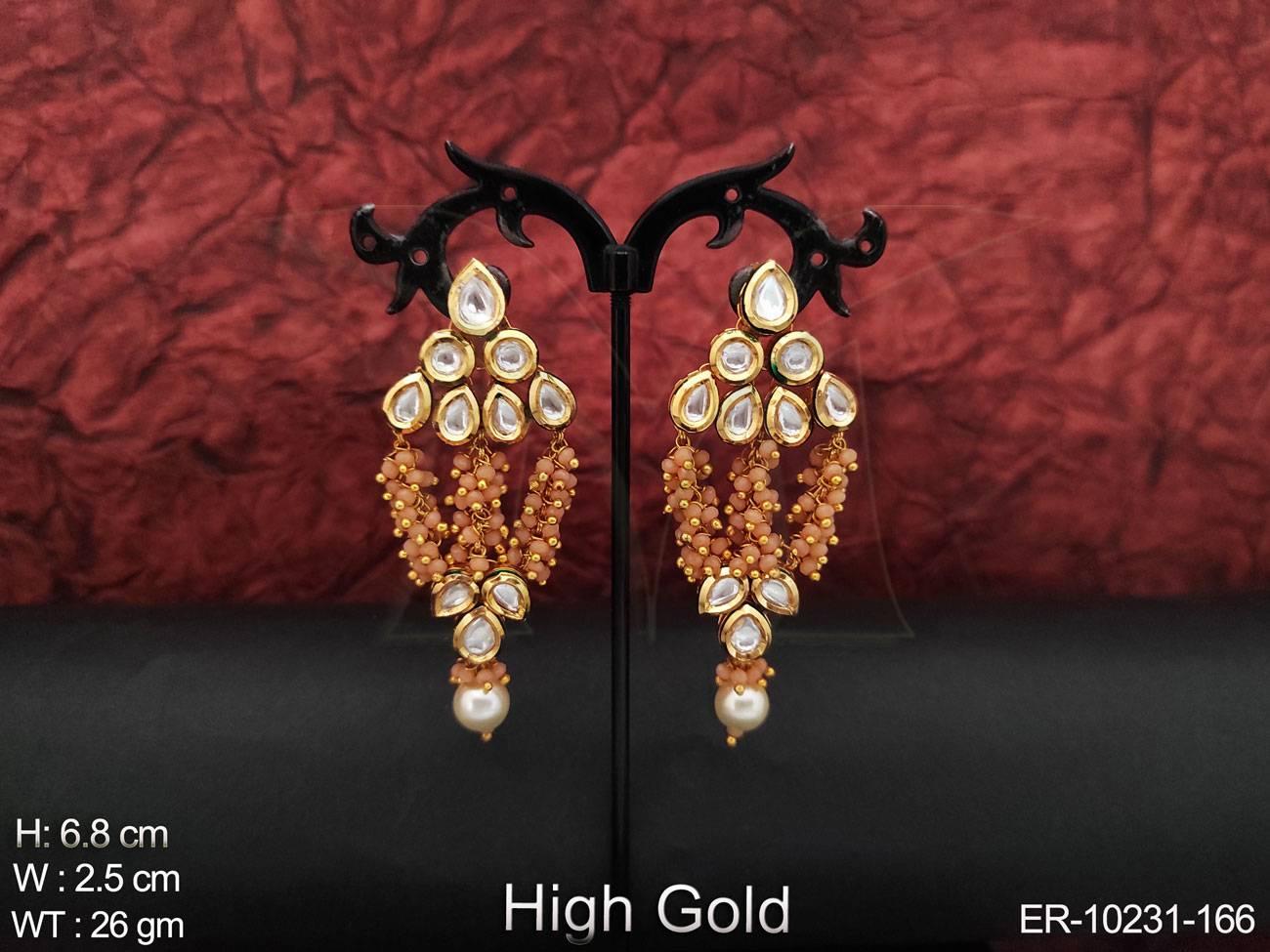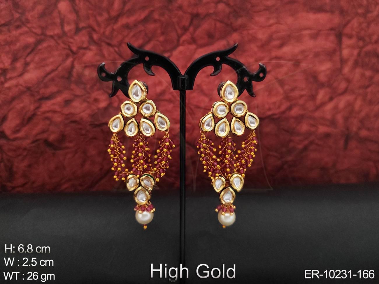 - High Gold Polish Full Stone Party Wear Fancy Designer Kundan Long Earring