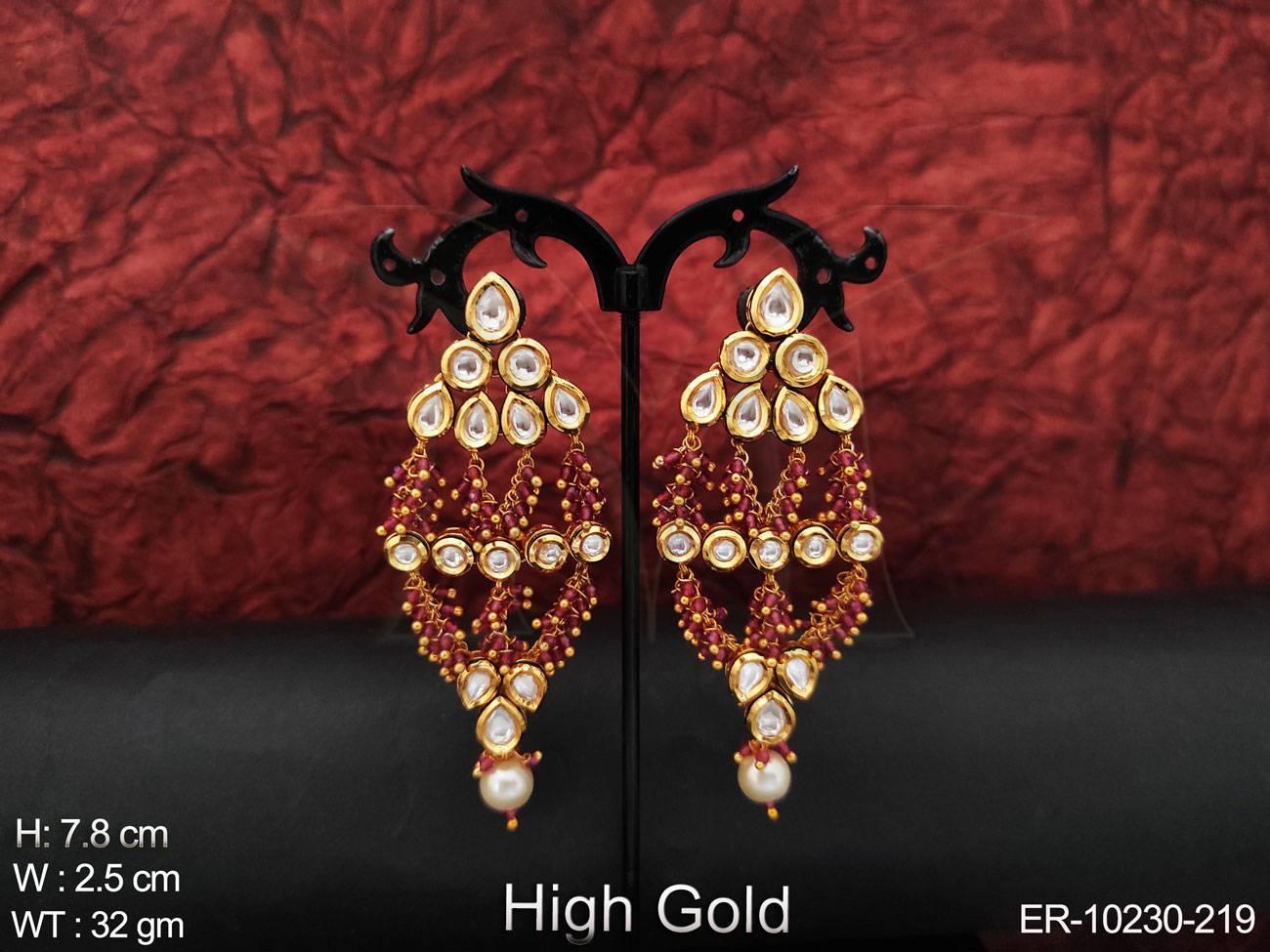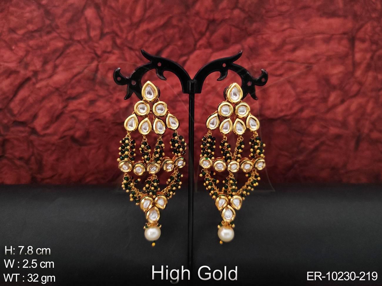 - High Gold Polish Full Stone with Cluster Pearls Party Wear Kundan Earring