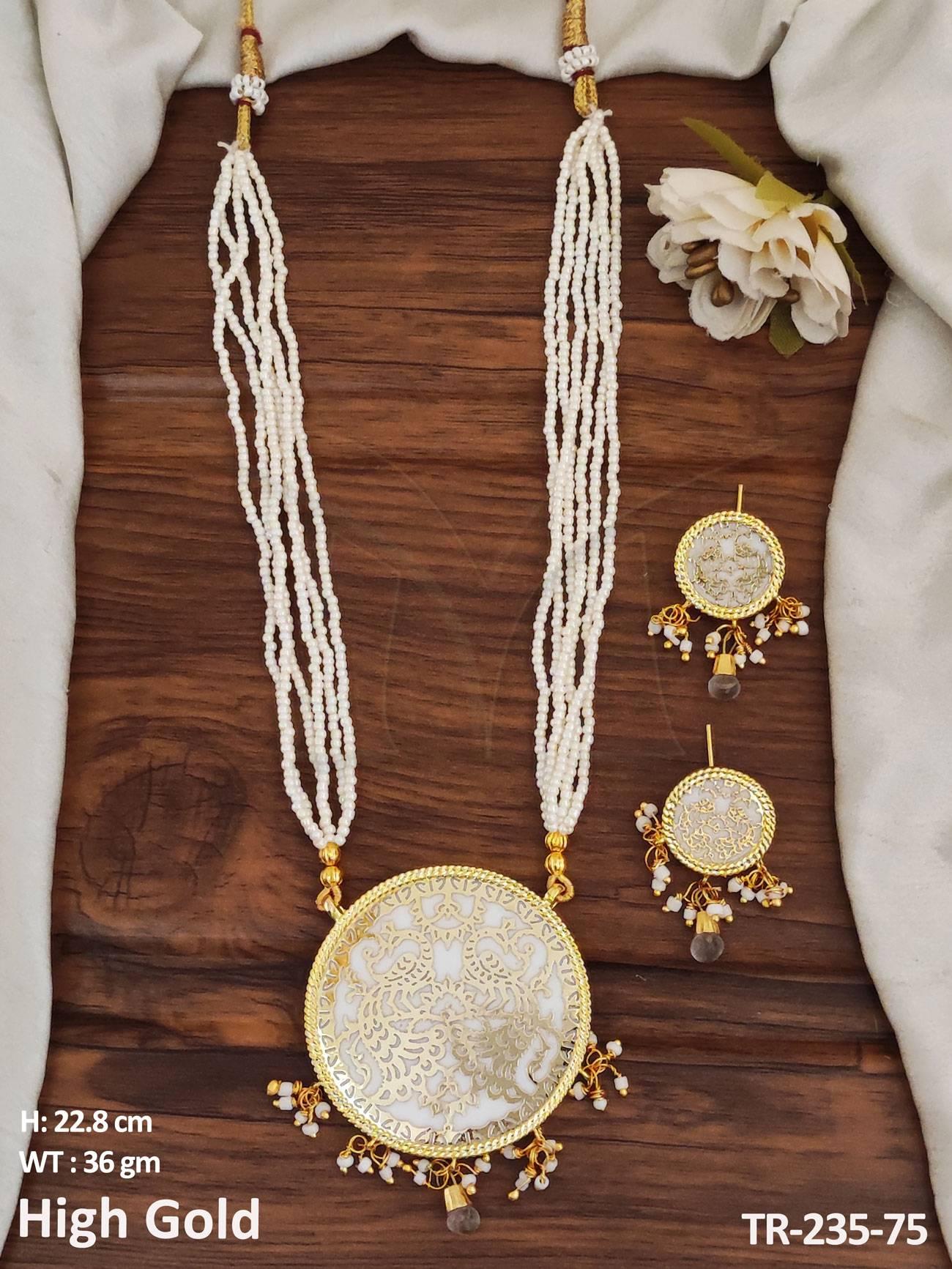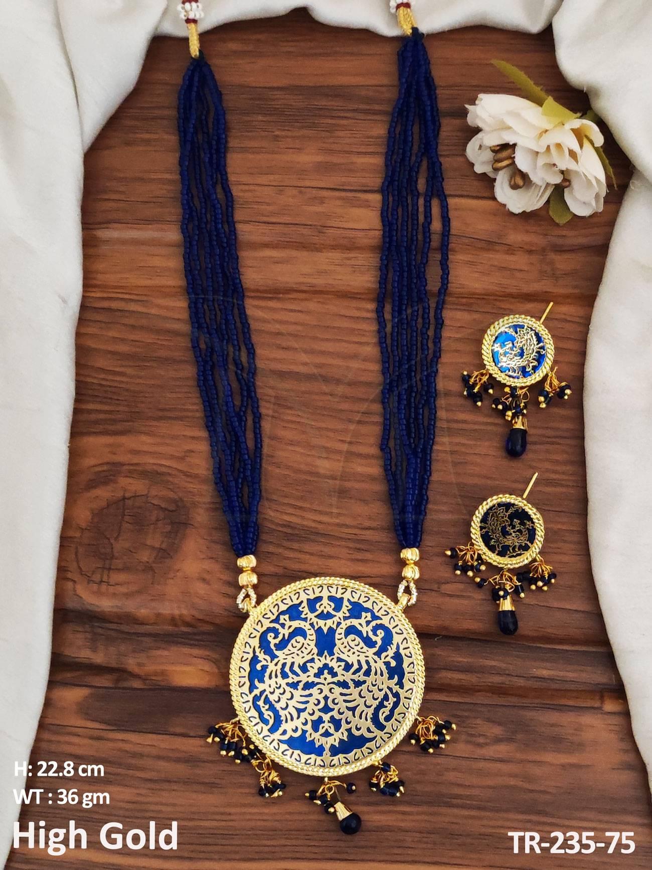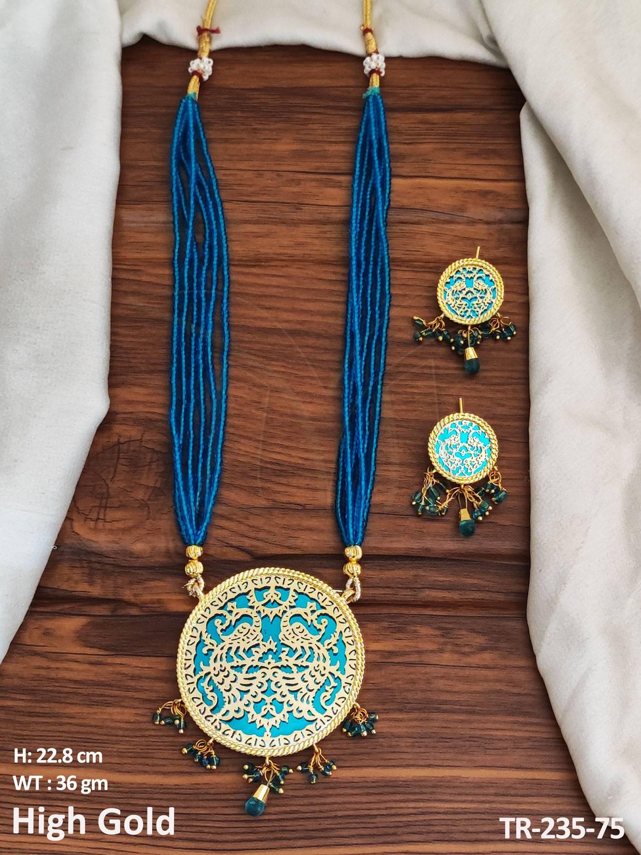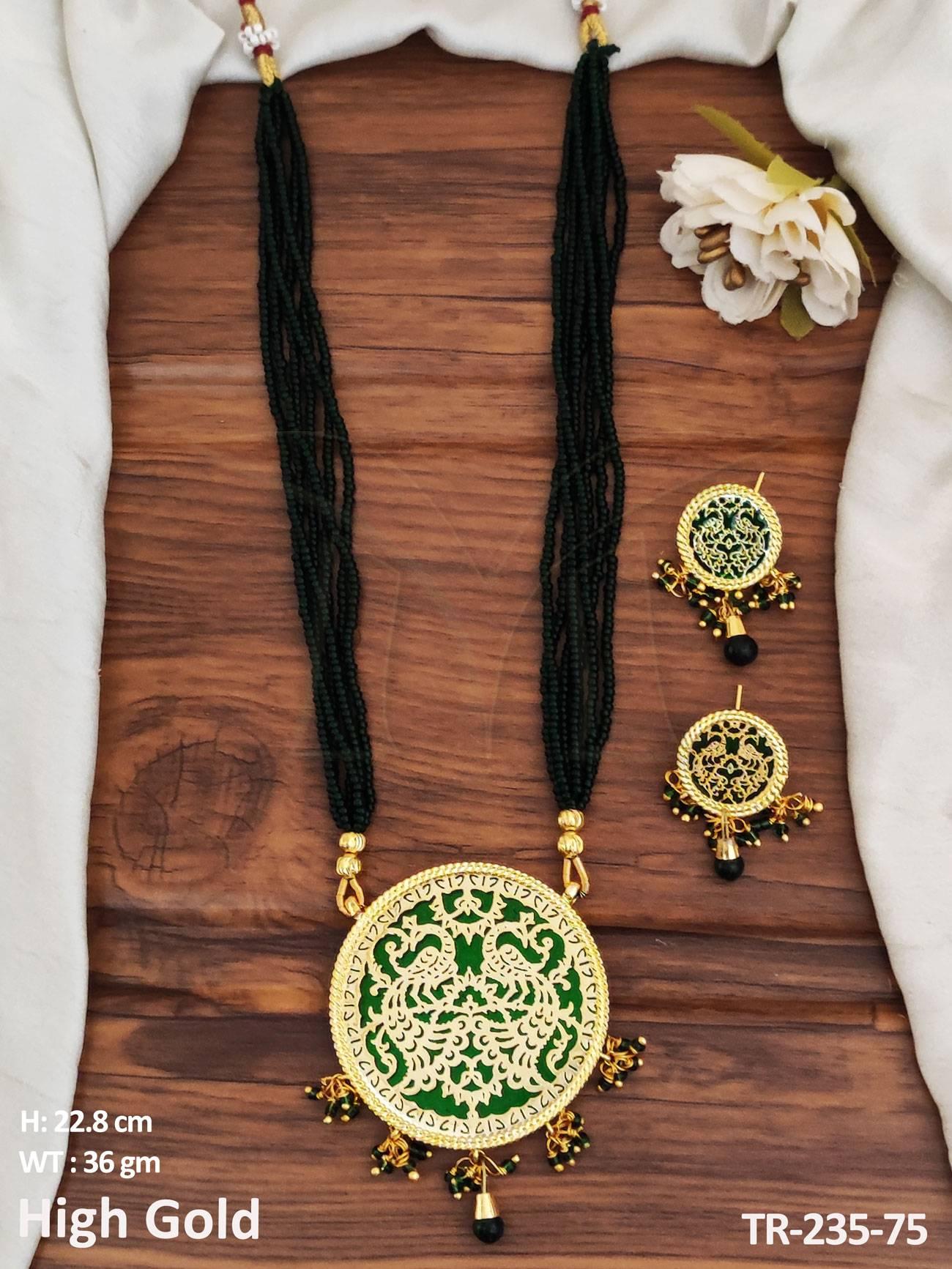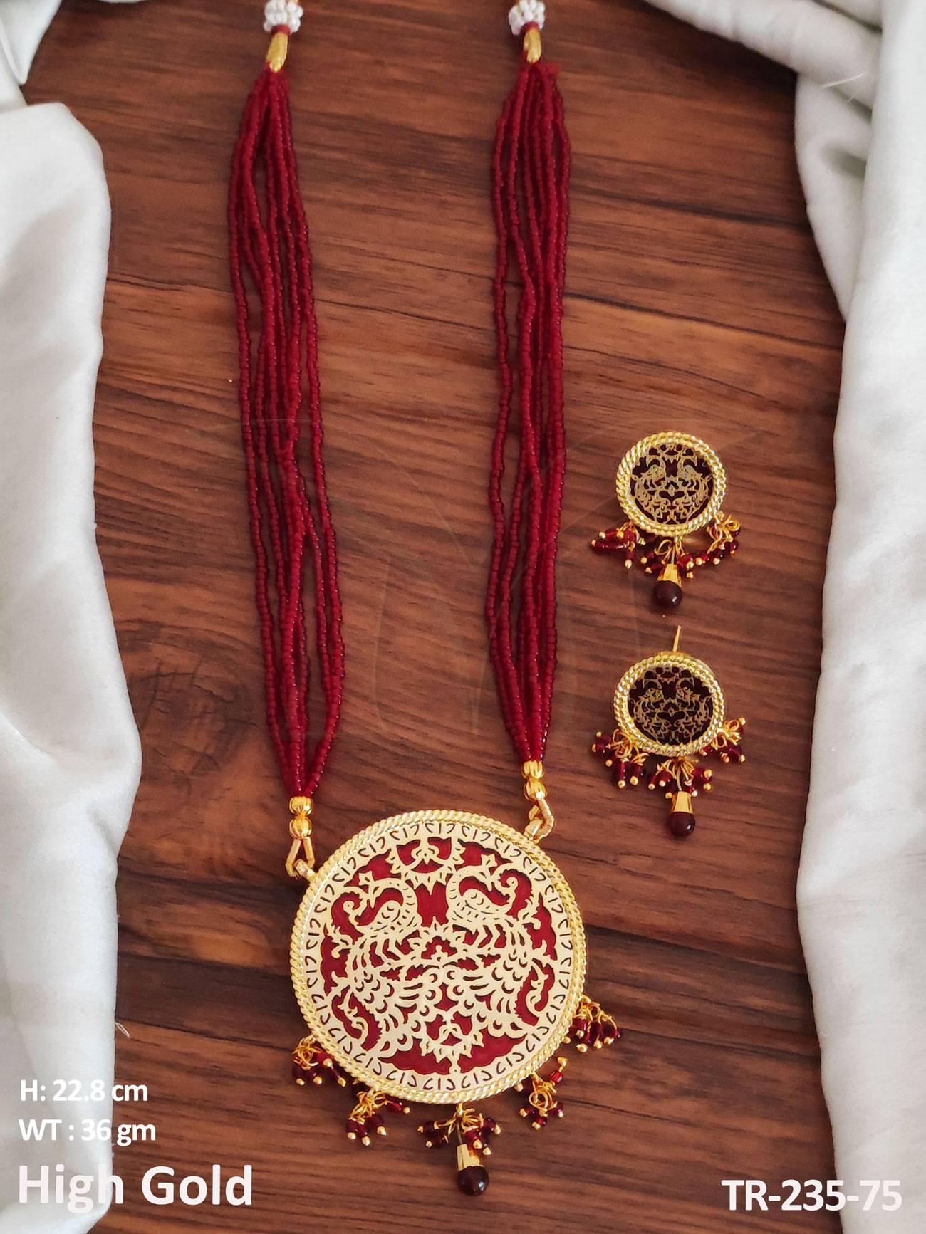 - High Gold Polish Round Shape Fancy Design Party Wear Thewa Pendan Set