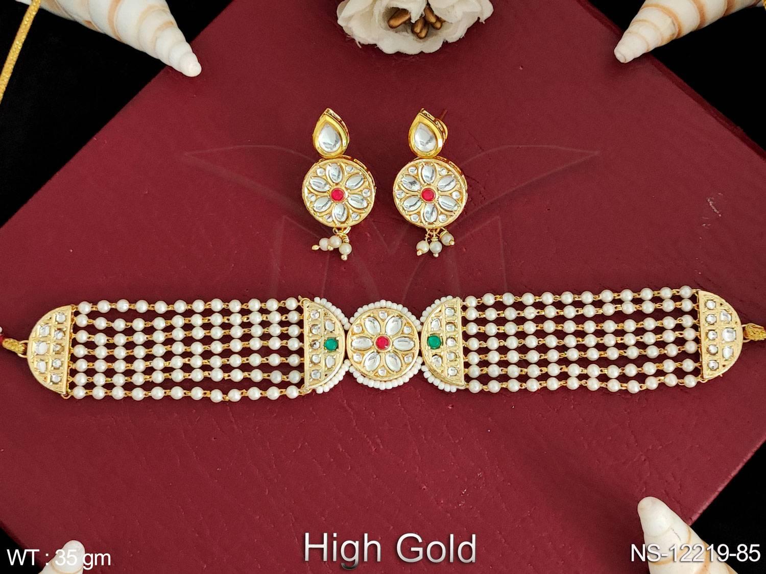 - High Gold Polsih Fancy Design Party wear Beautiful Beaded Choker Style Antique Necklace Set
