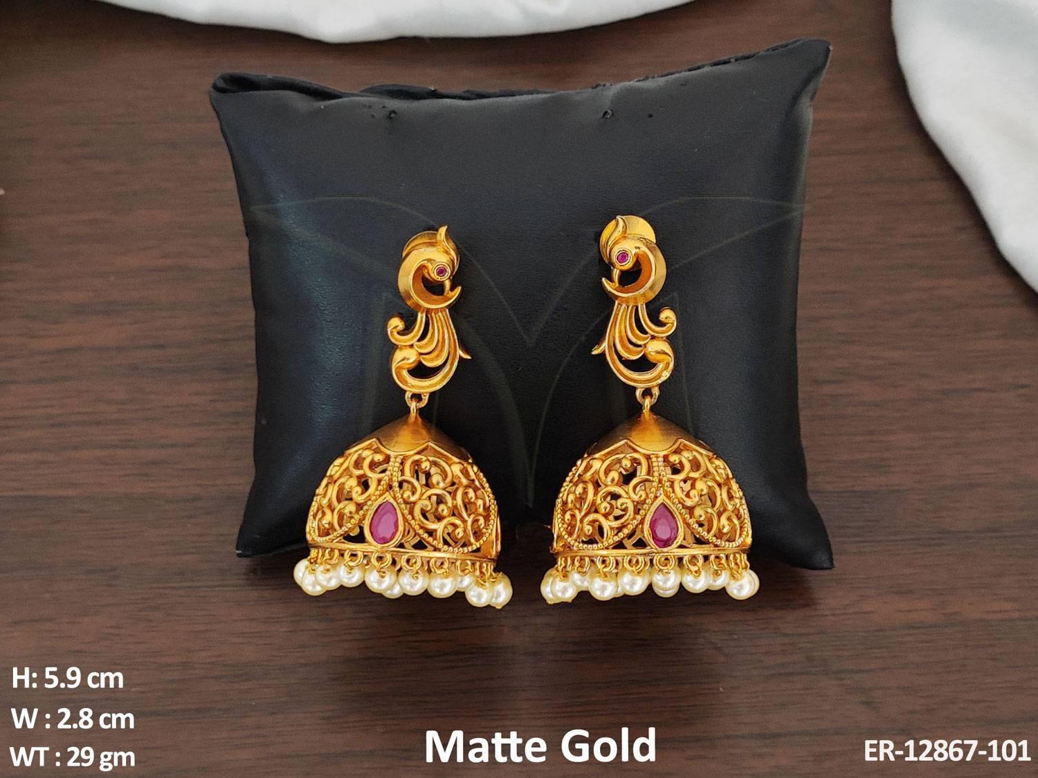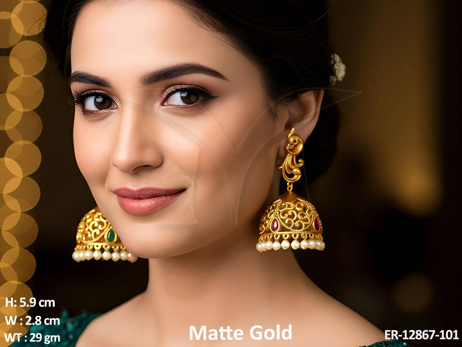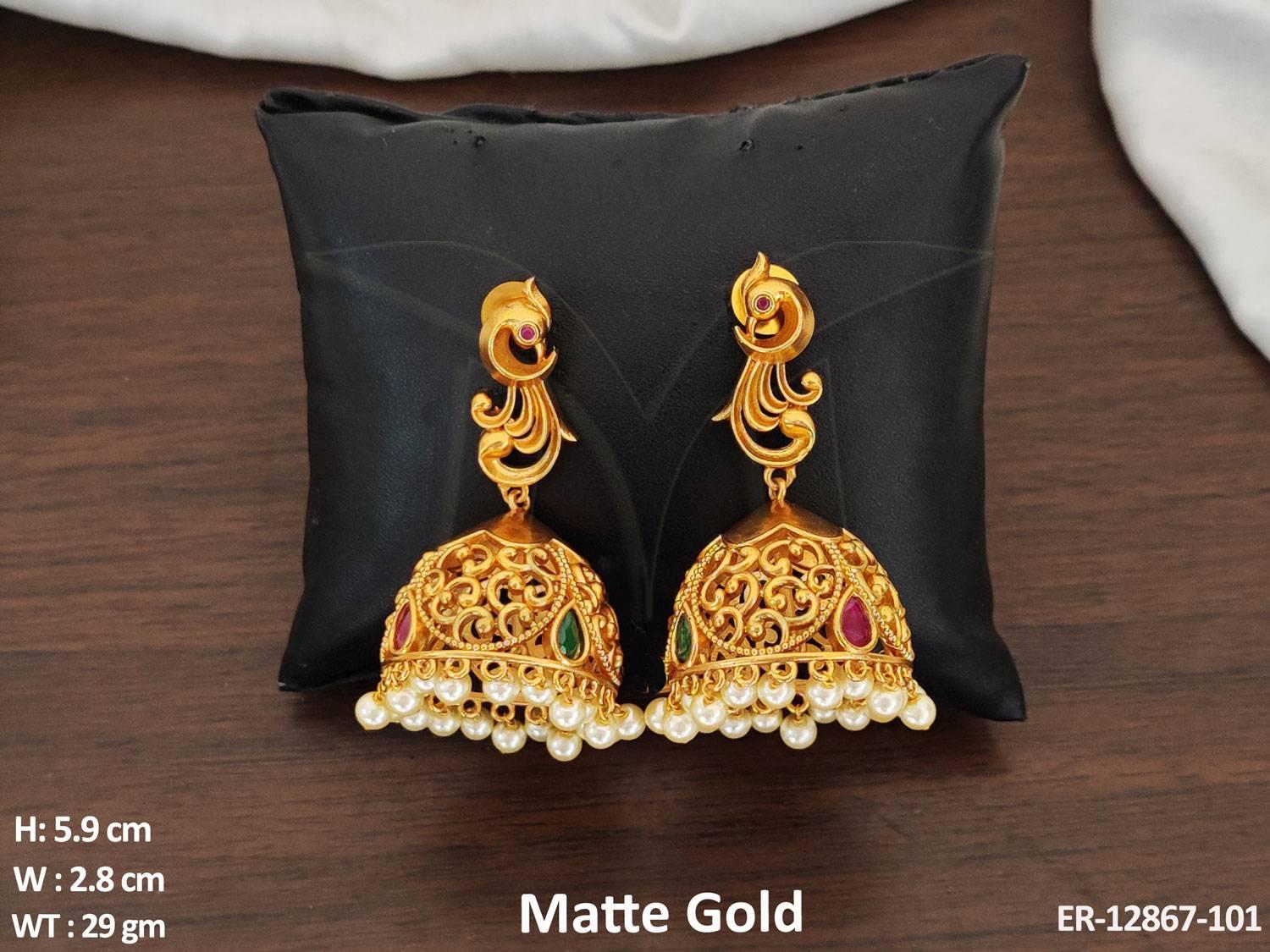 Kemp Jewellery Matte Gold Polish Designer Wear Kemp Jhumka Earrings Set