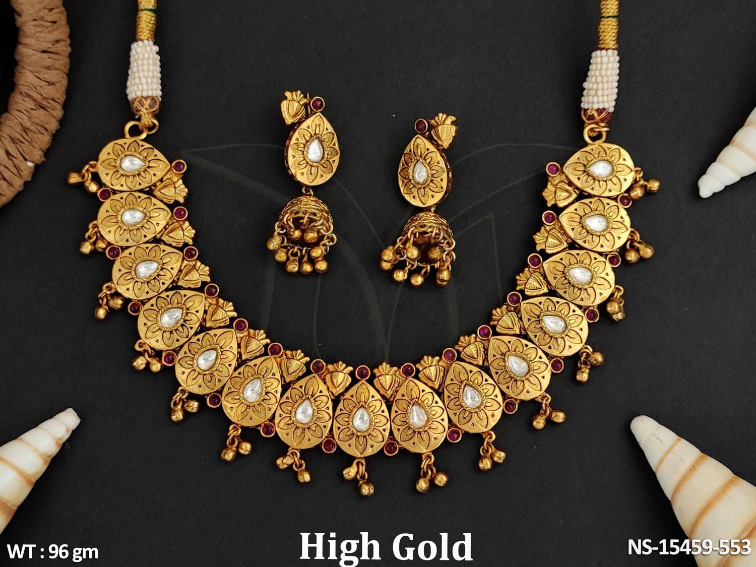 Kundan Artificial Jewellery High Gold Polish Stylish Attractive Design Necklace Set