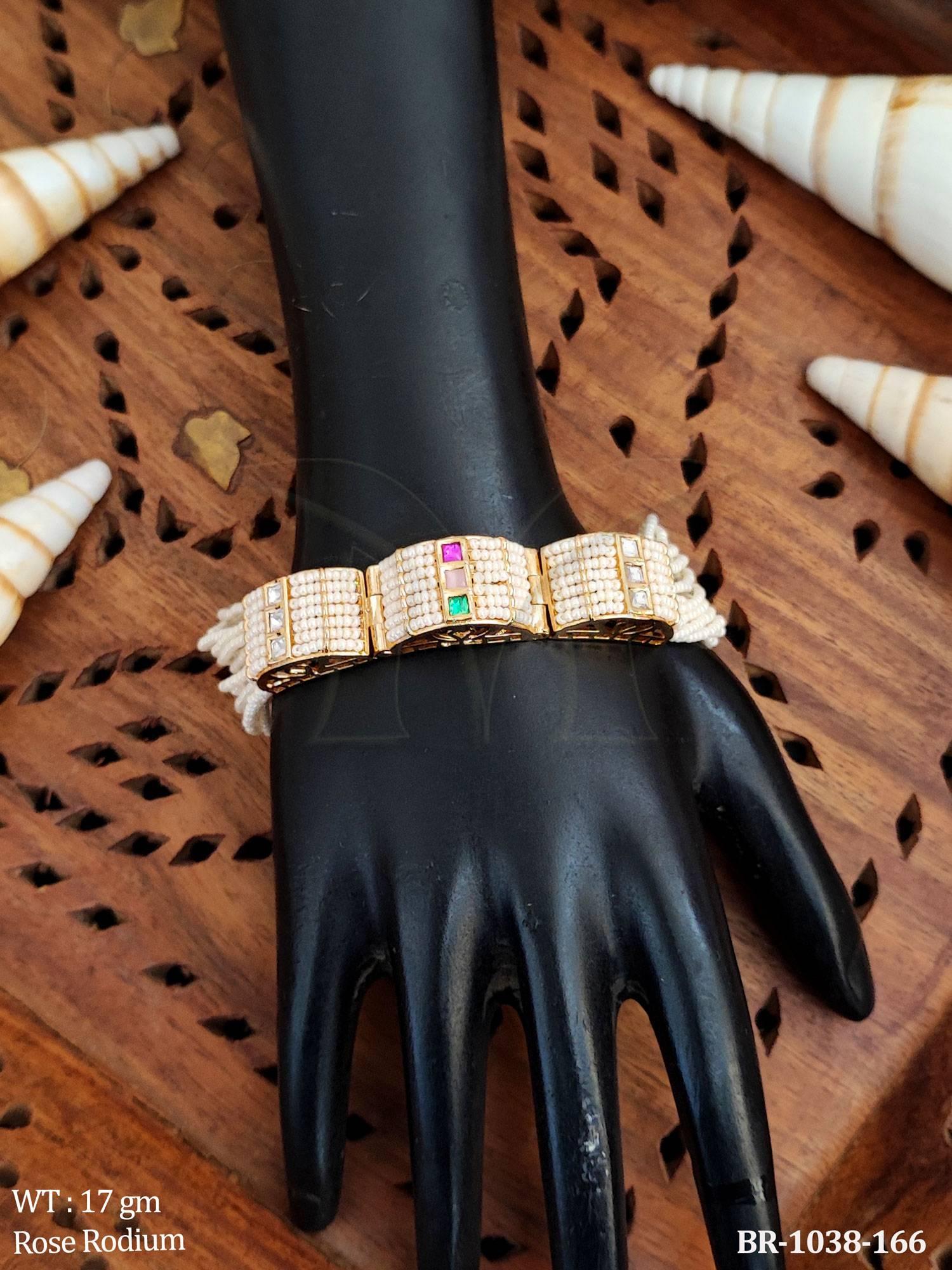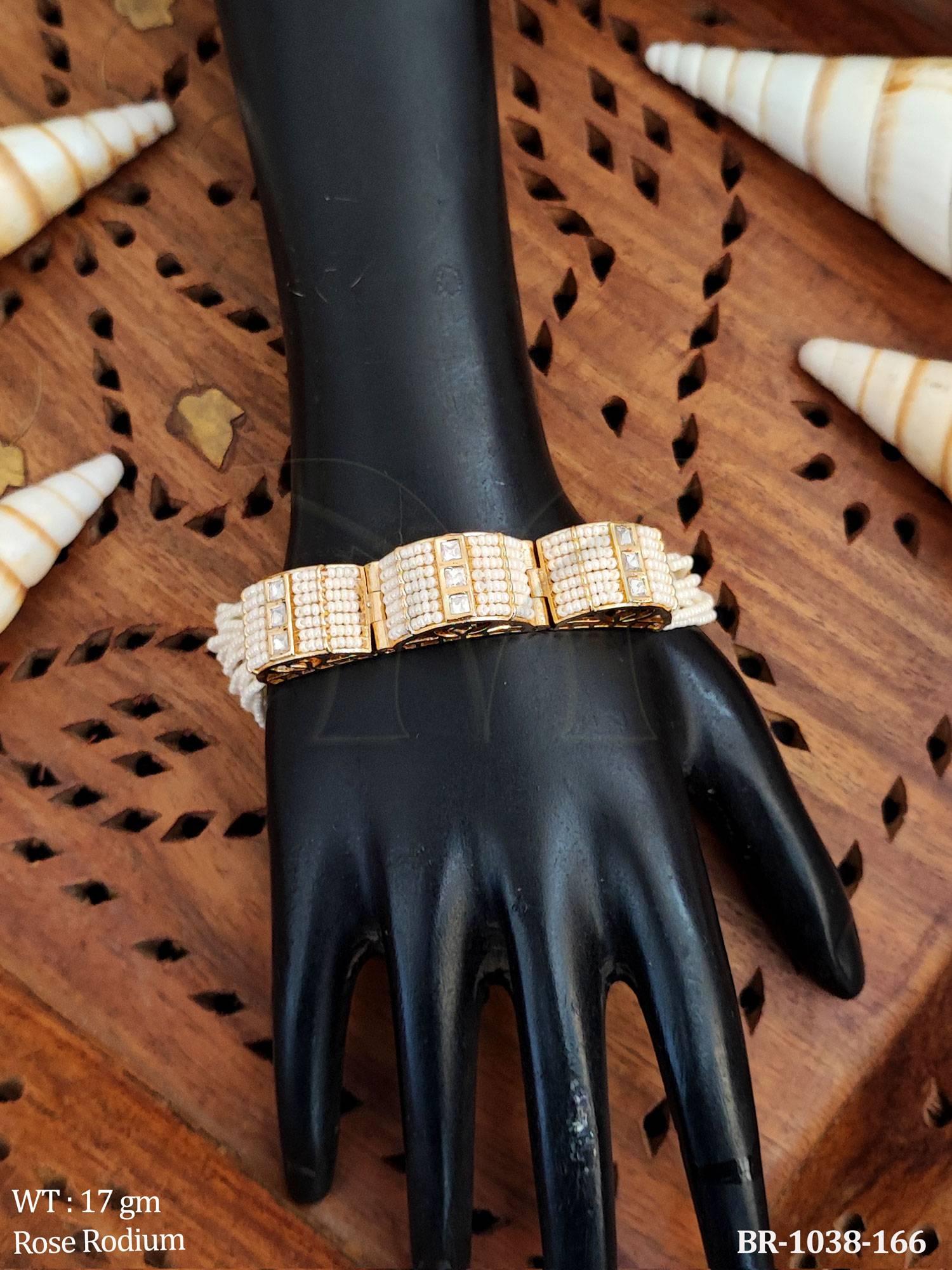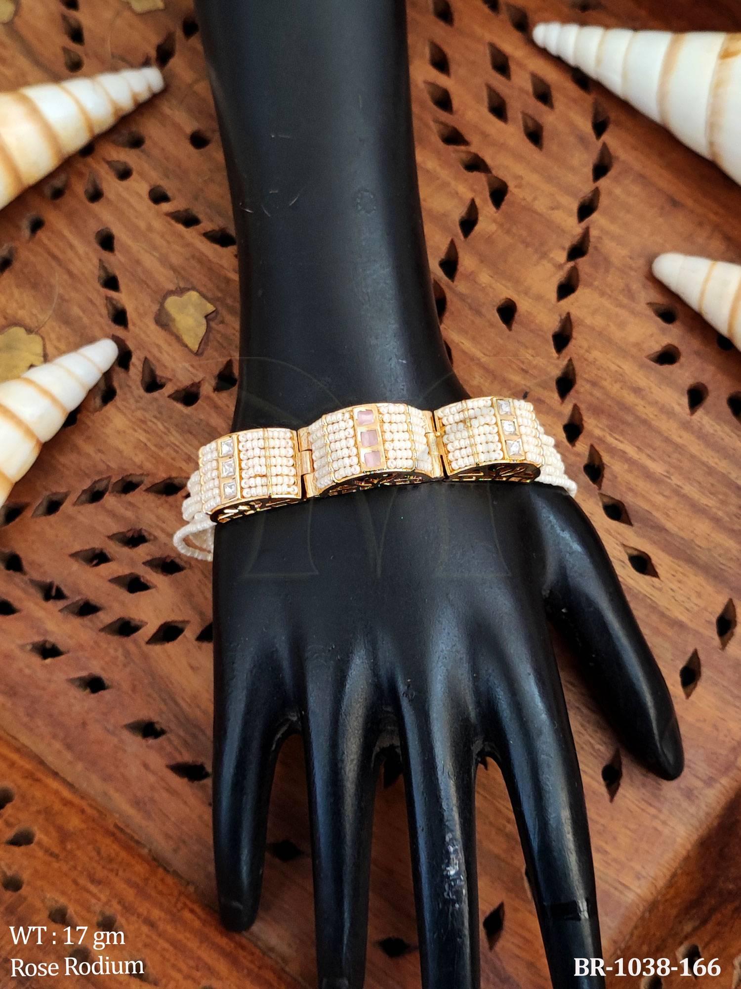 Kundan Bracelet in Rose Rodium Tone for Festive Wear