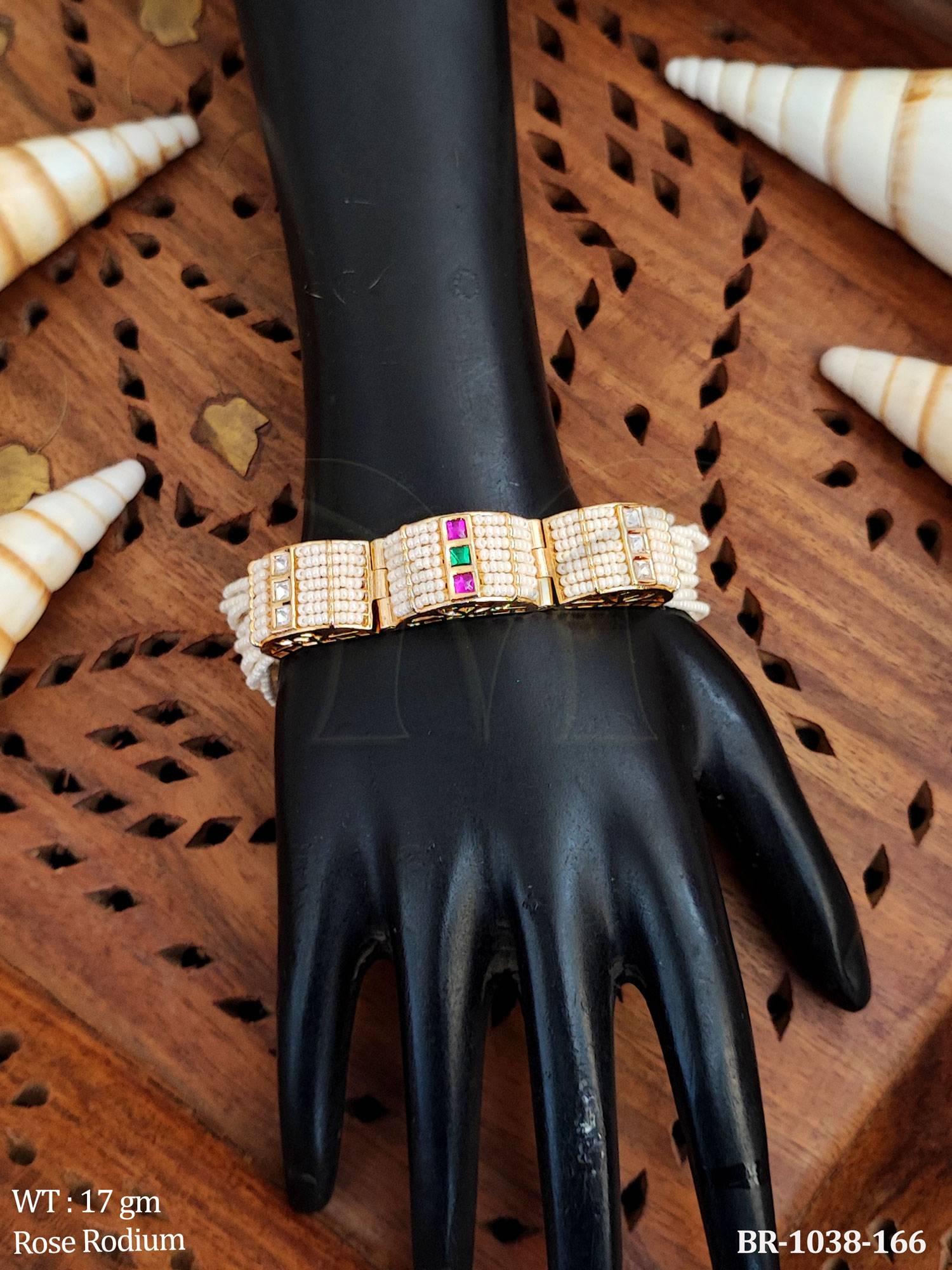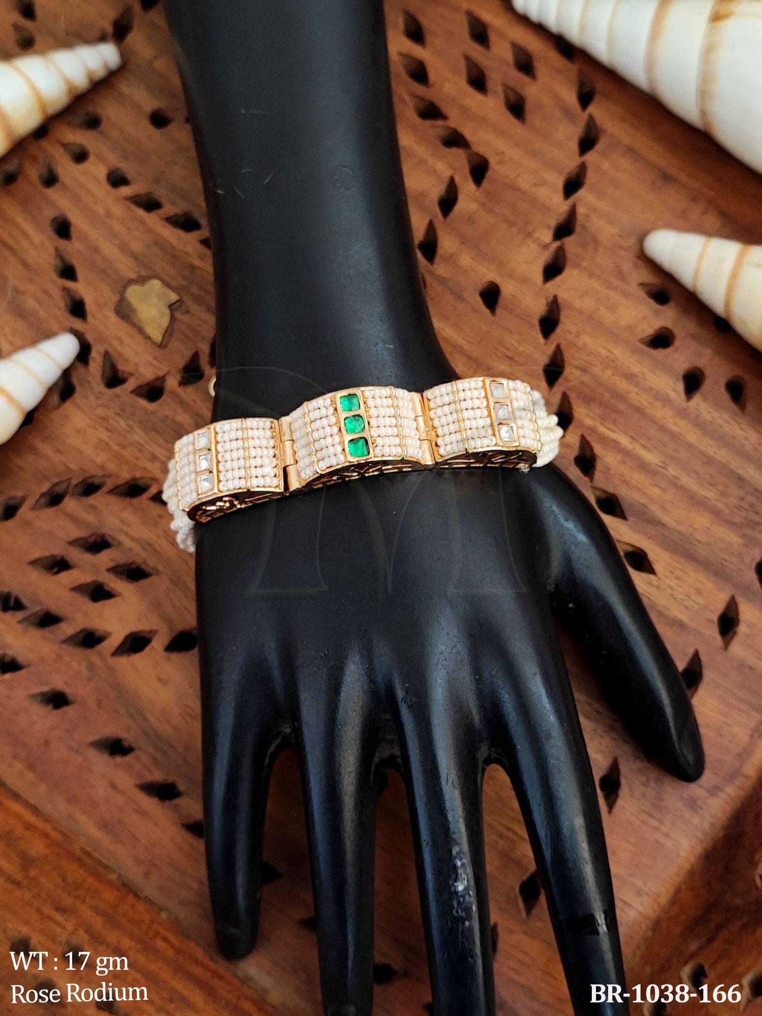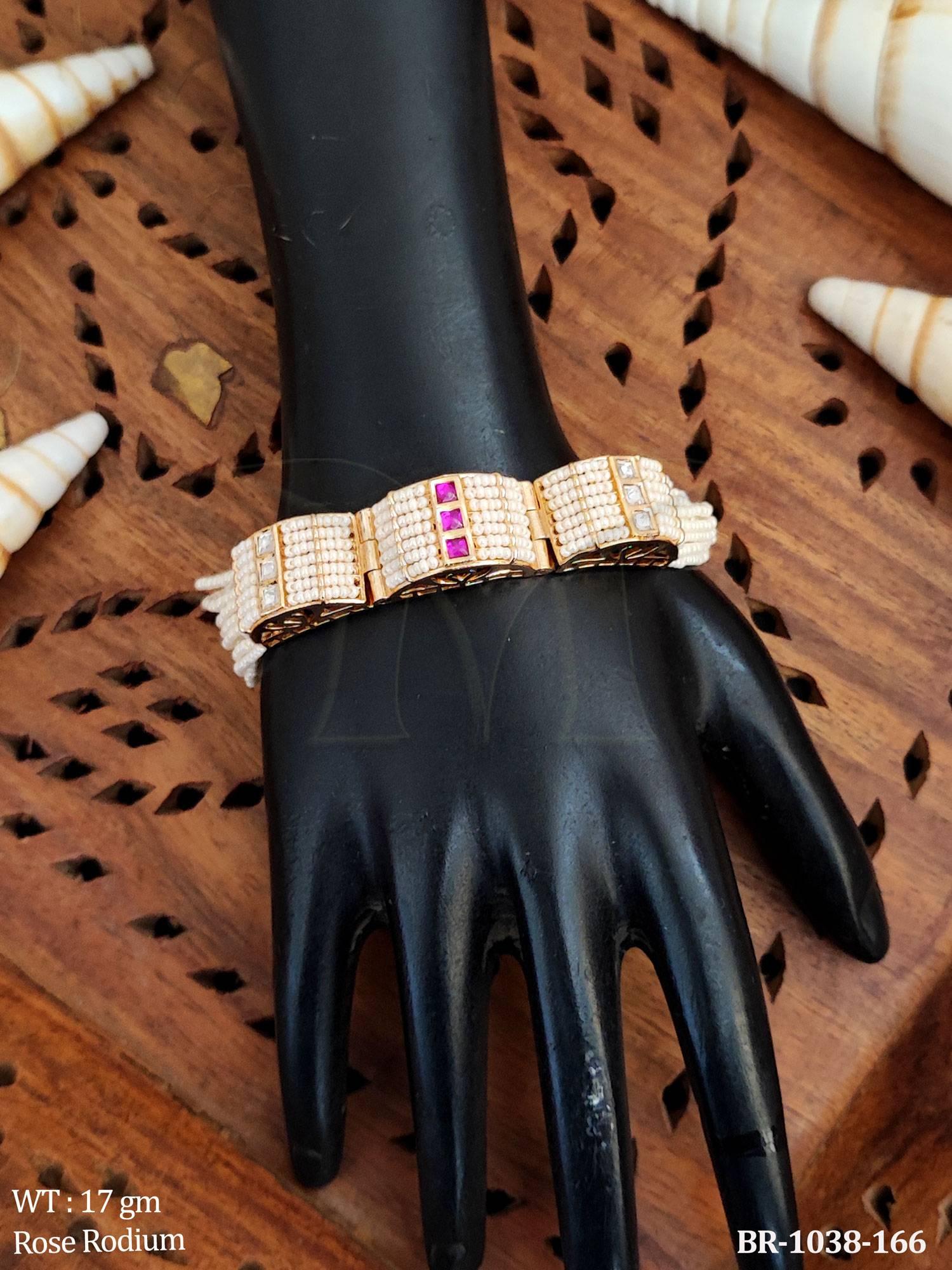 Kundan Bracelet in Rose Rodium Tone for Festive Wear