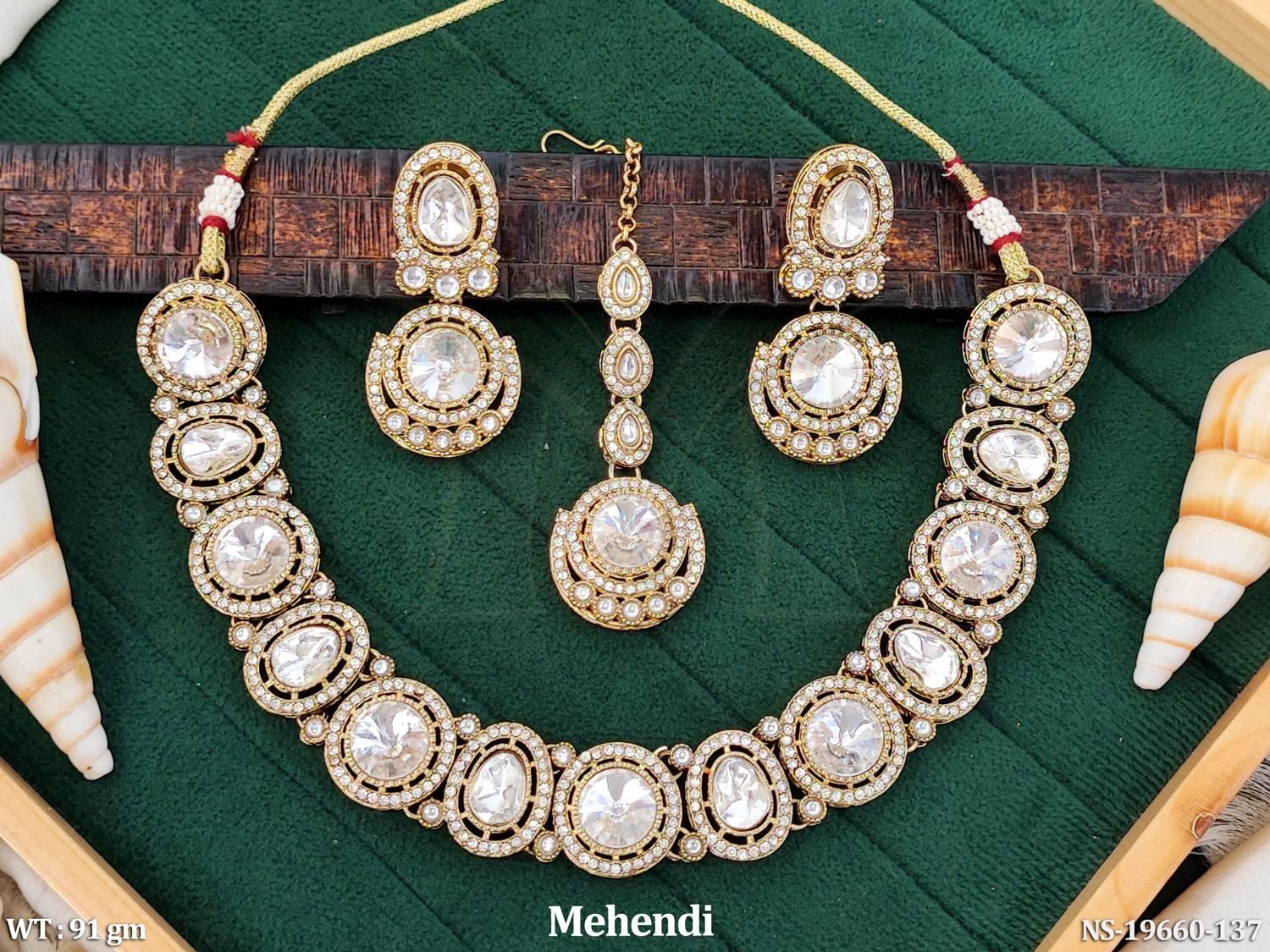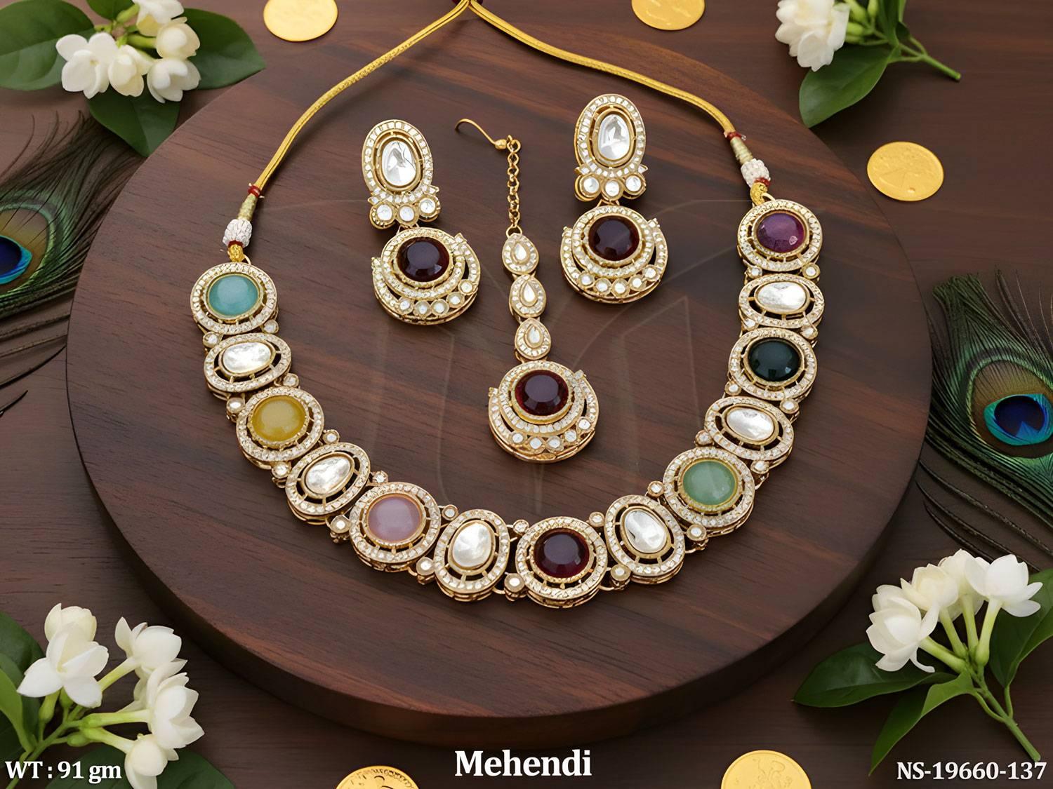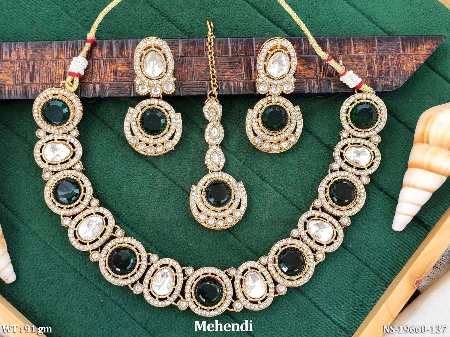 - Kundan Design Mehendi Polish Full Stone Short Necklace Set