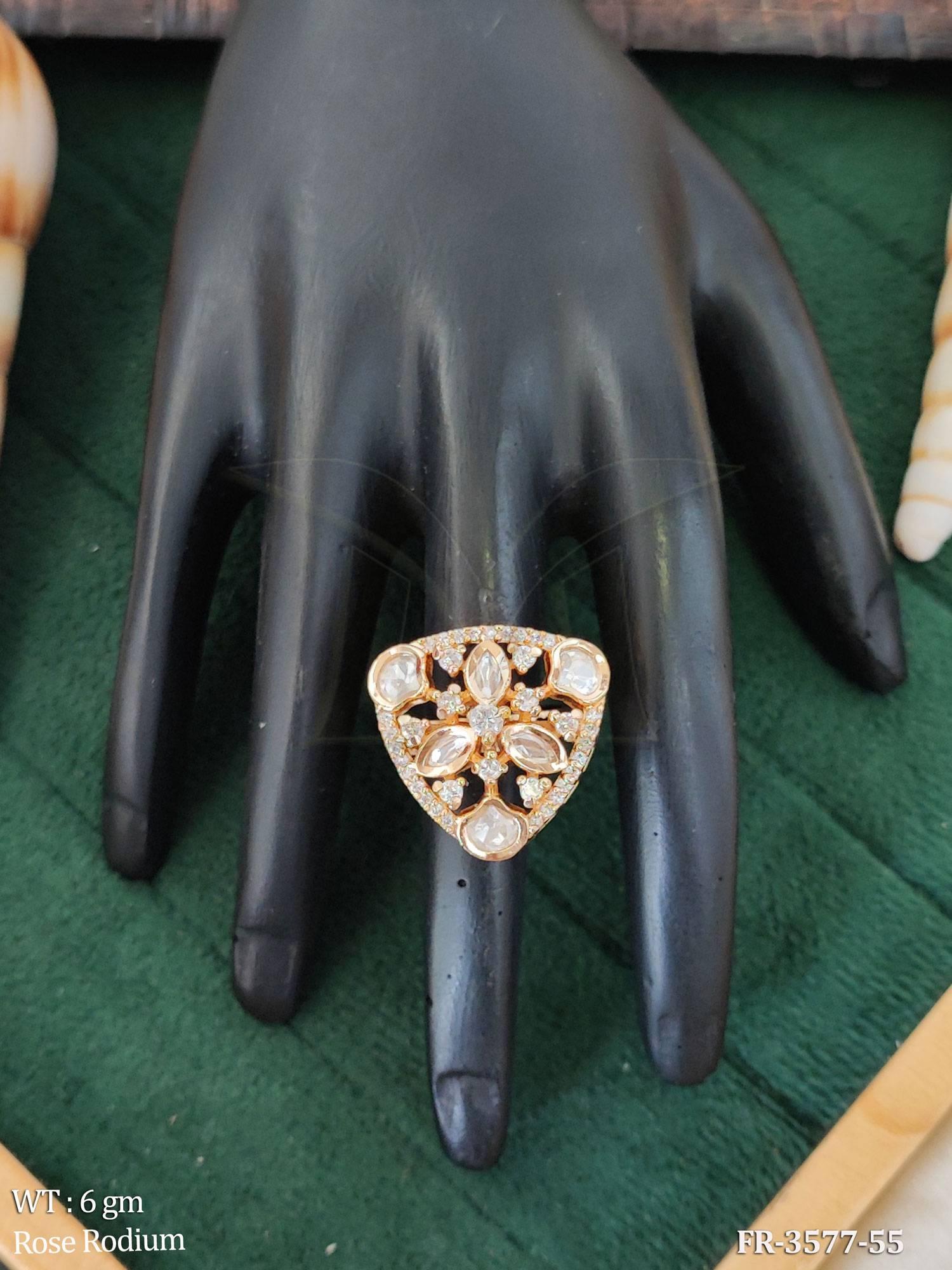 Kundan Rose Rodium Polish Finger Rings