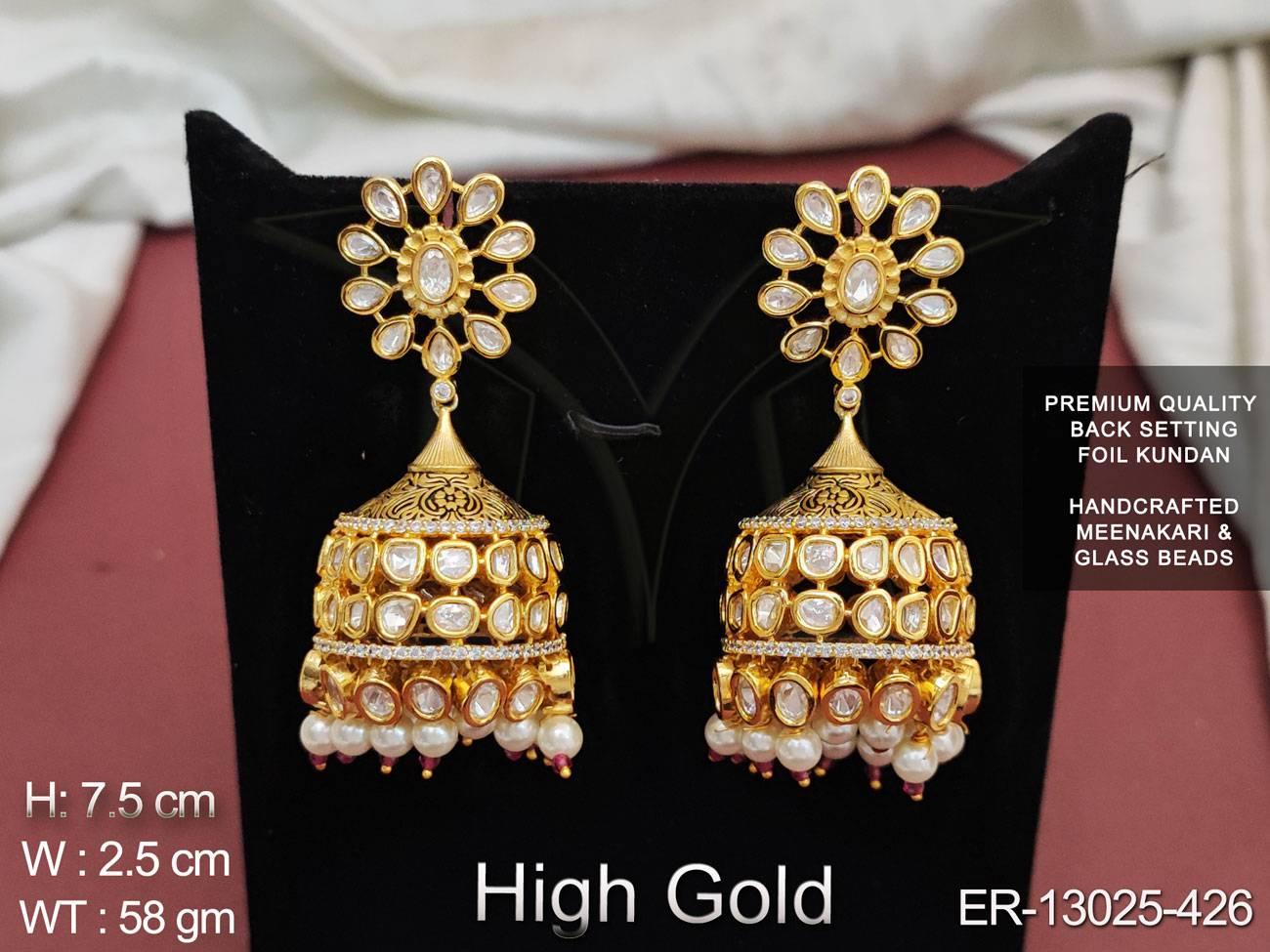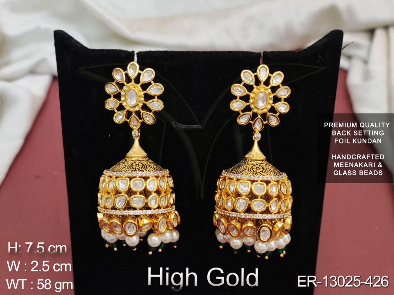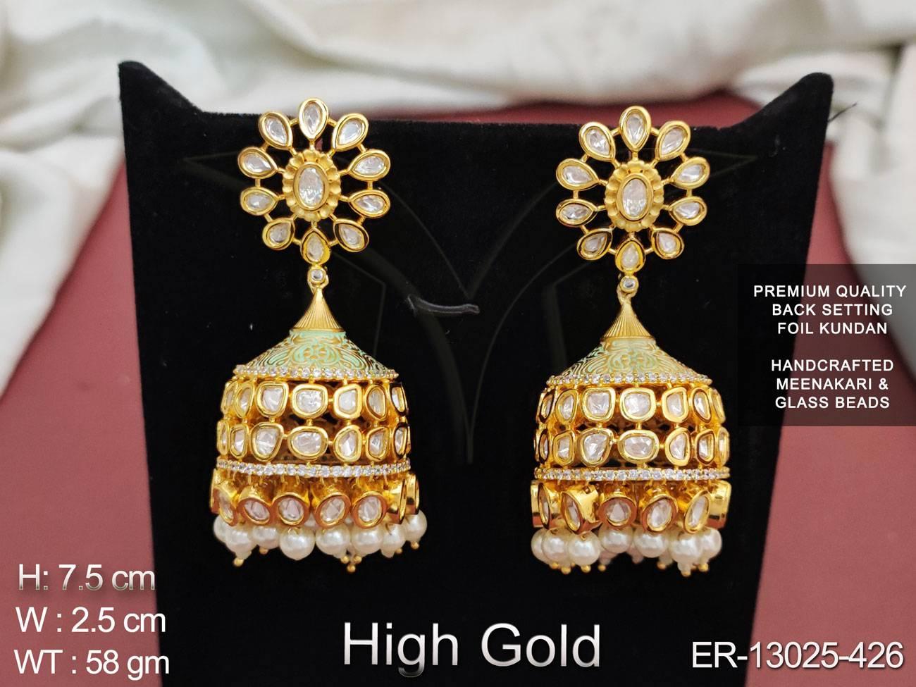 Kundan Stones High gold Polish Fancy Design Glass Beads Meenakari Desinger Kundan Earring