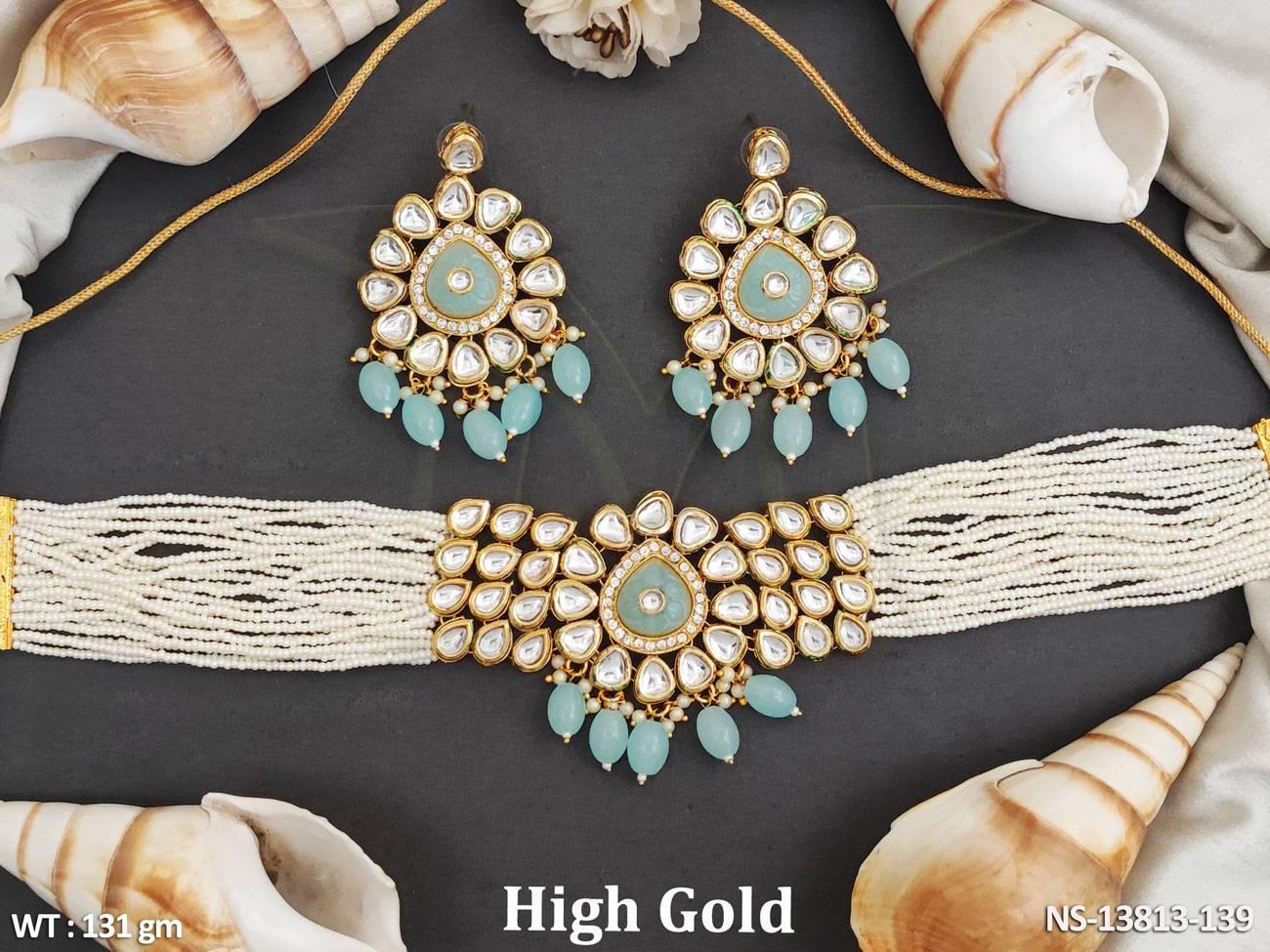 - Kundan Stones High Gold Polish Fancy Design Party wear Kundan Jewellery Kundan choker Necklace Set