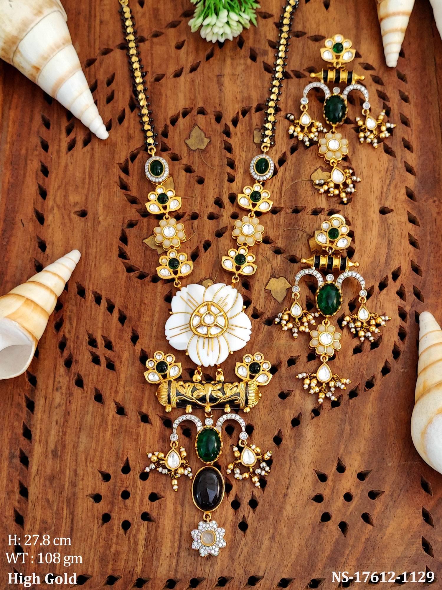 - Kundan White Flower design Full Stone Polki Necklace Set