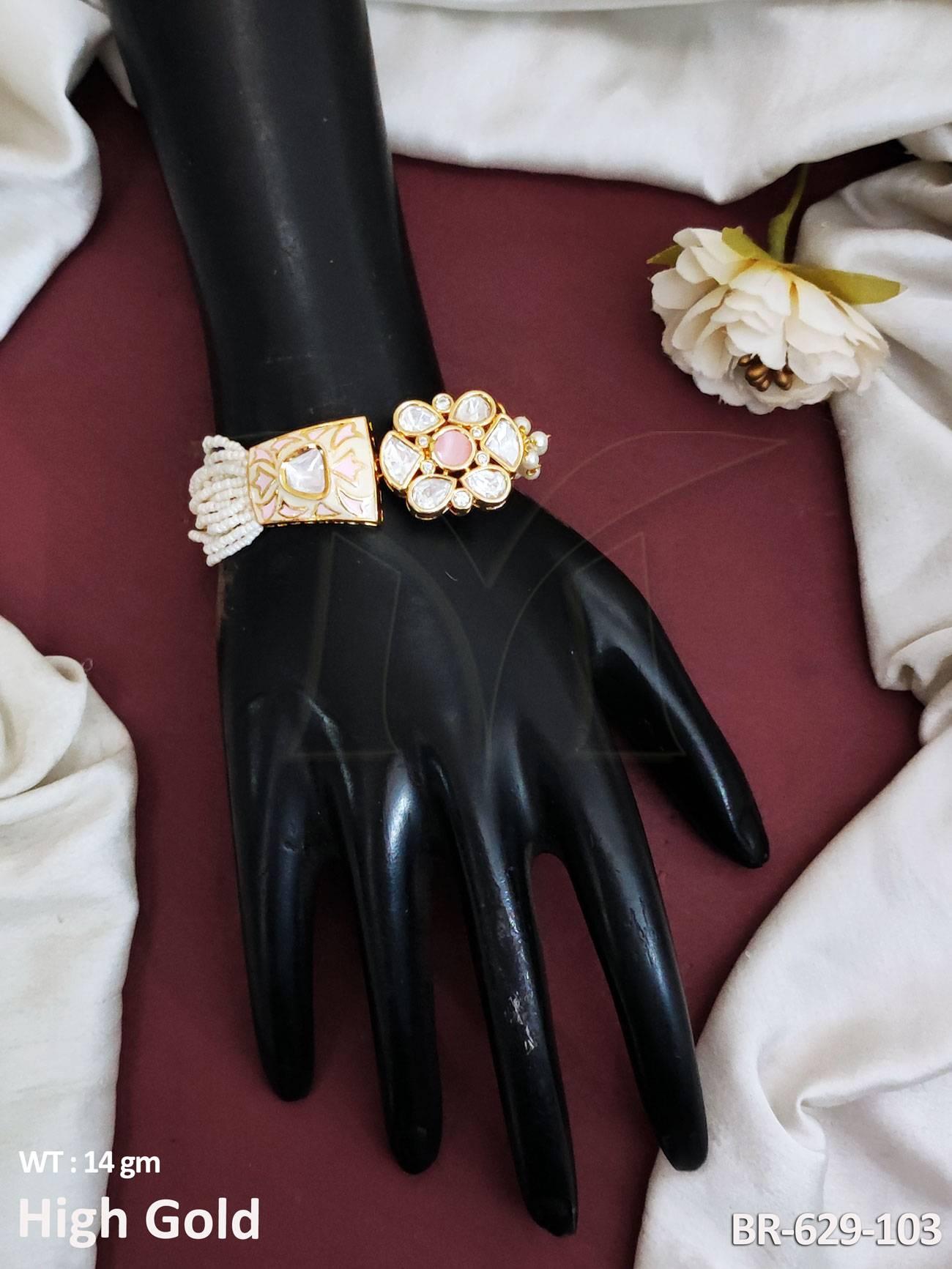 - Kundna Stones Party wear Beautiful Kundn Stones Designer High Gold Polish Kundan Bracelet