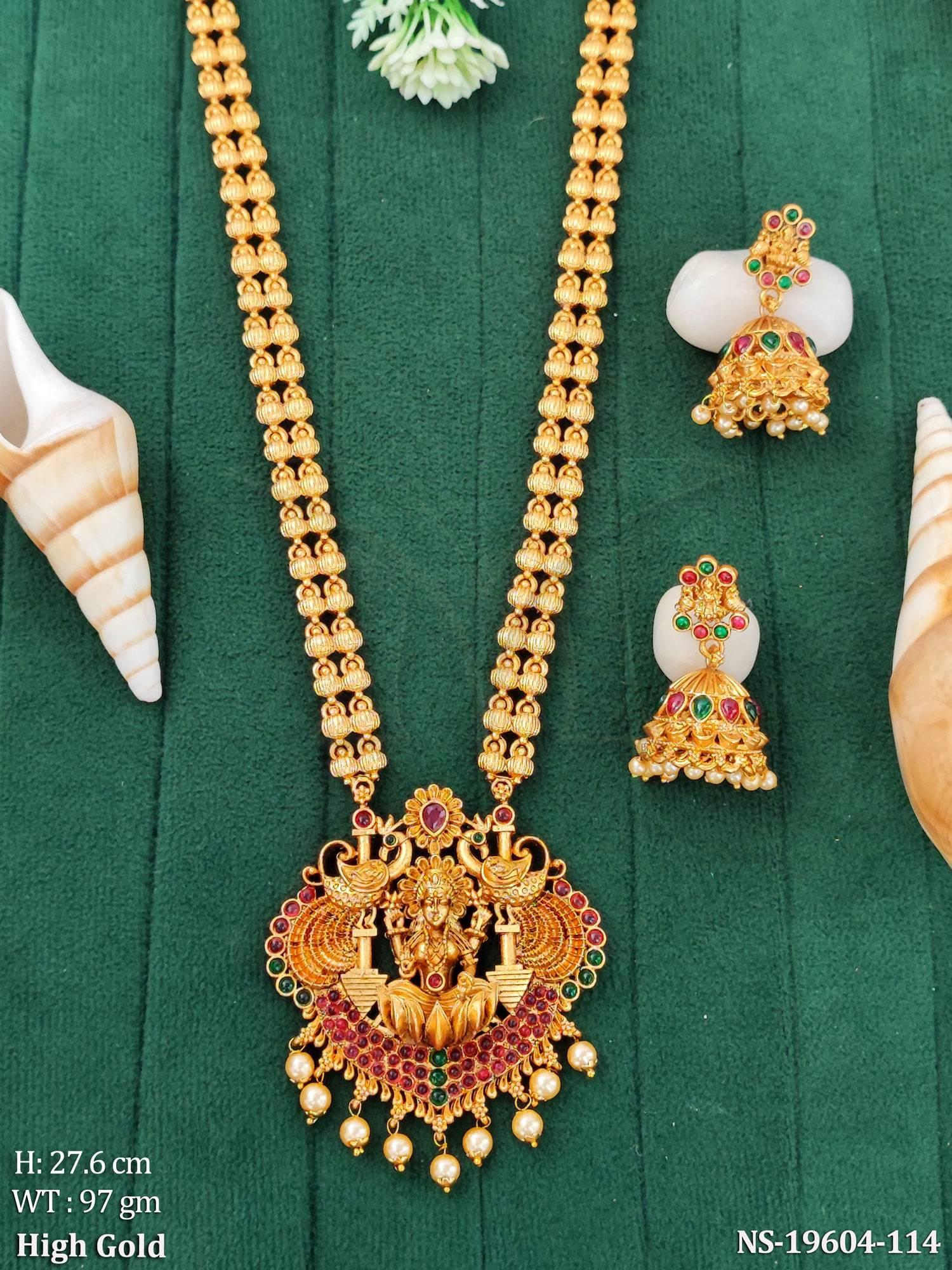 - Lakshmi Temple Gold Finish Long Necklace Set