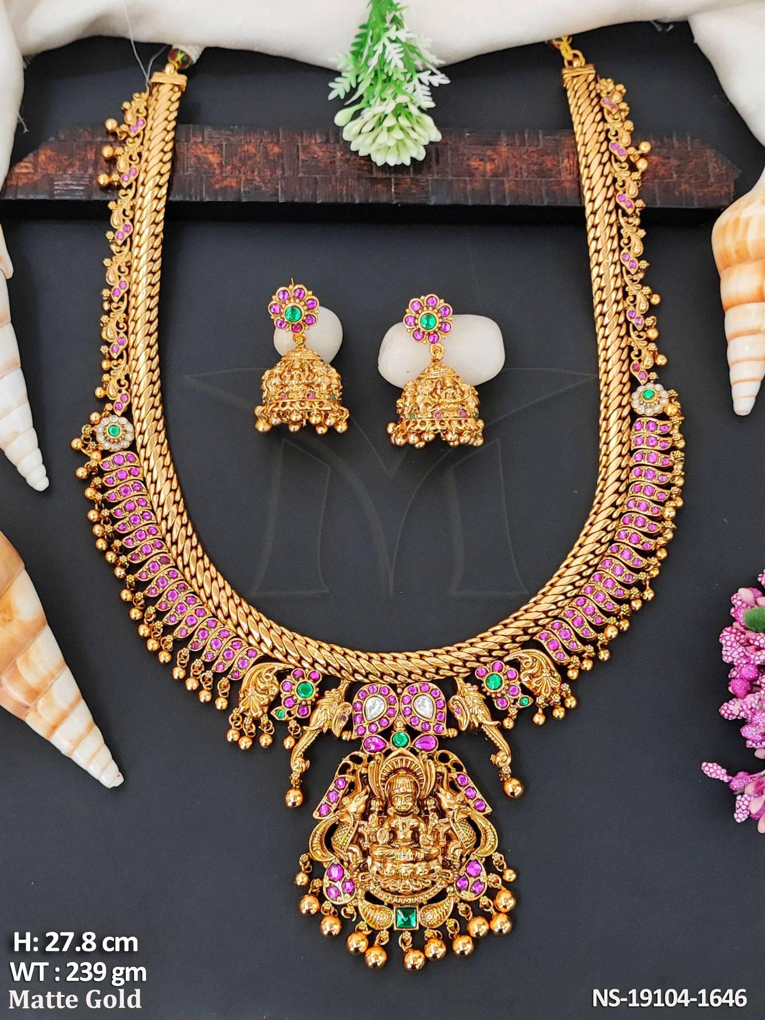 - Matte Gold Lakshmi Temple Bridal Necklace Set