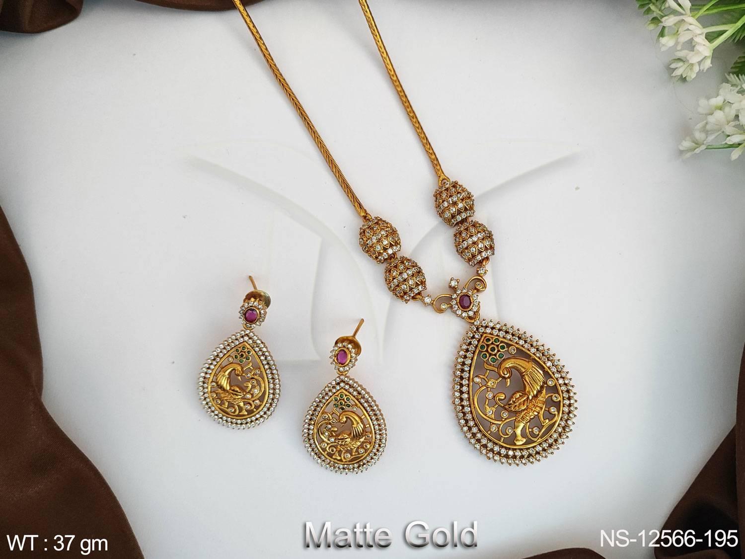 - Matte Gold Polish Fancy Desing Party wear Beautiful Kemp Jewellery Kemp Long Necklace Seet