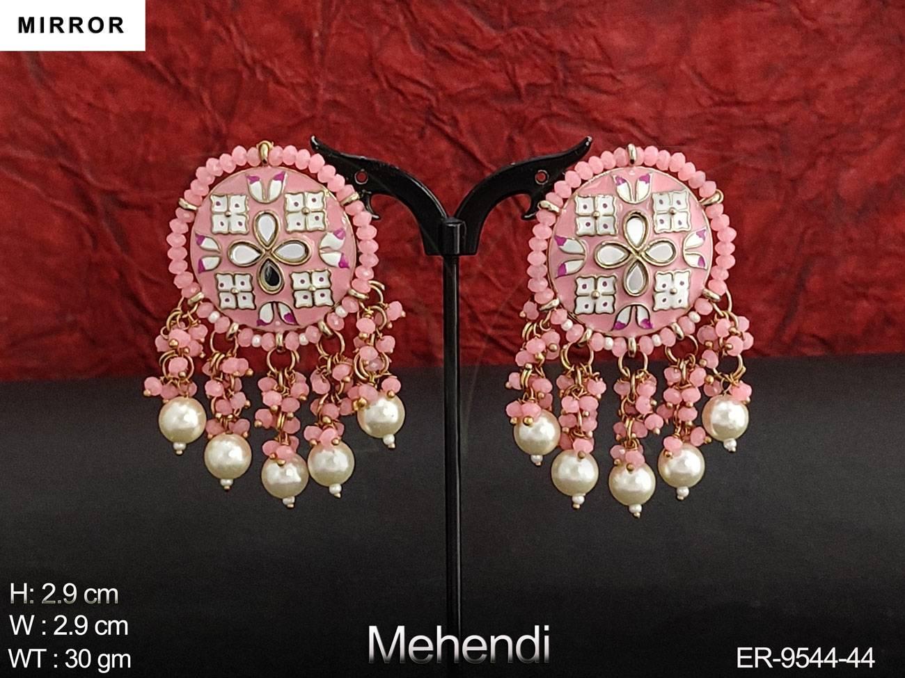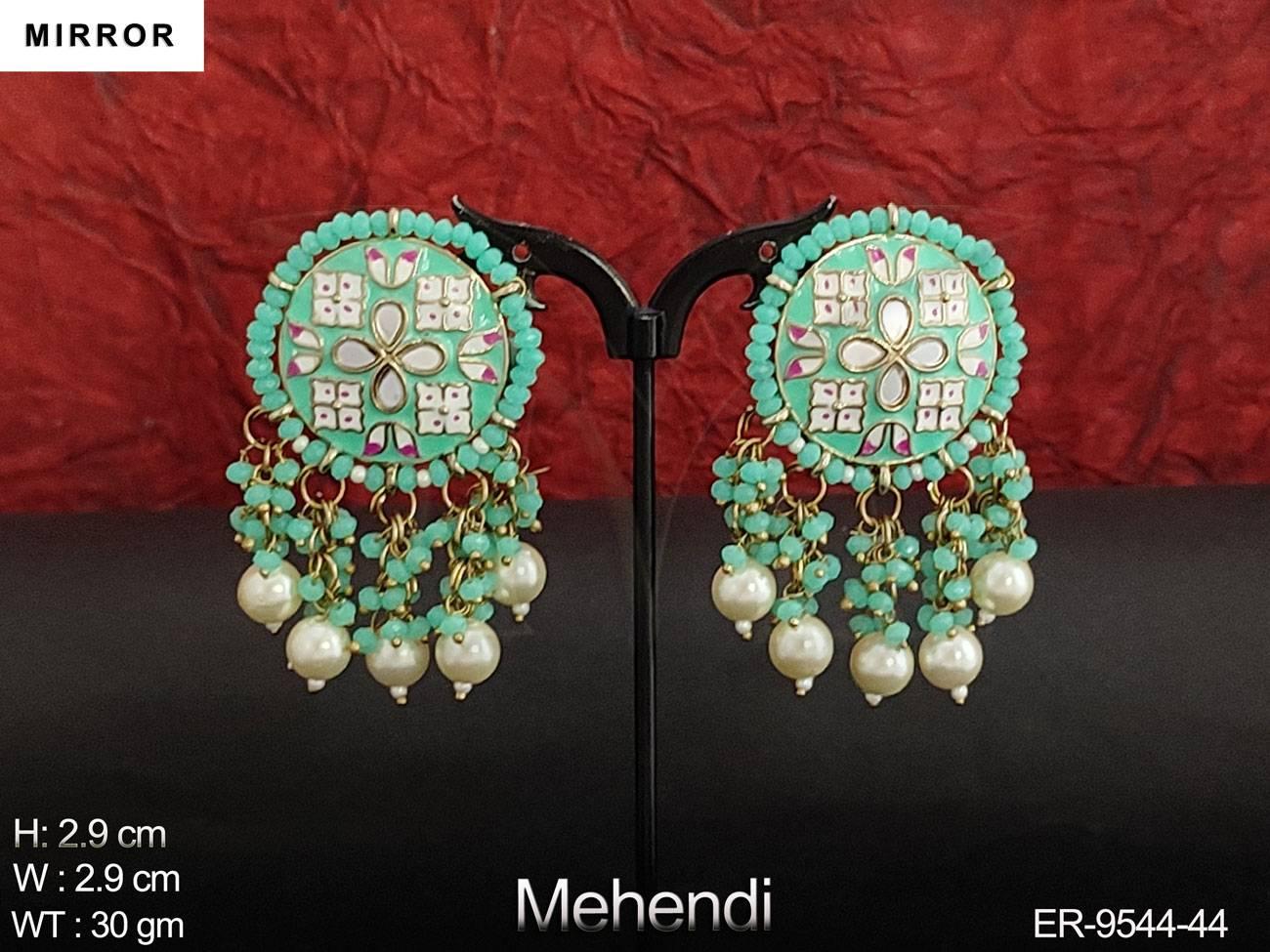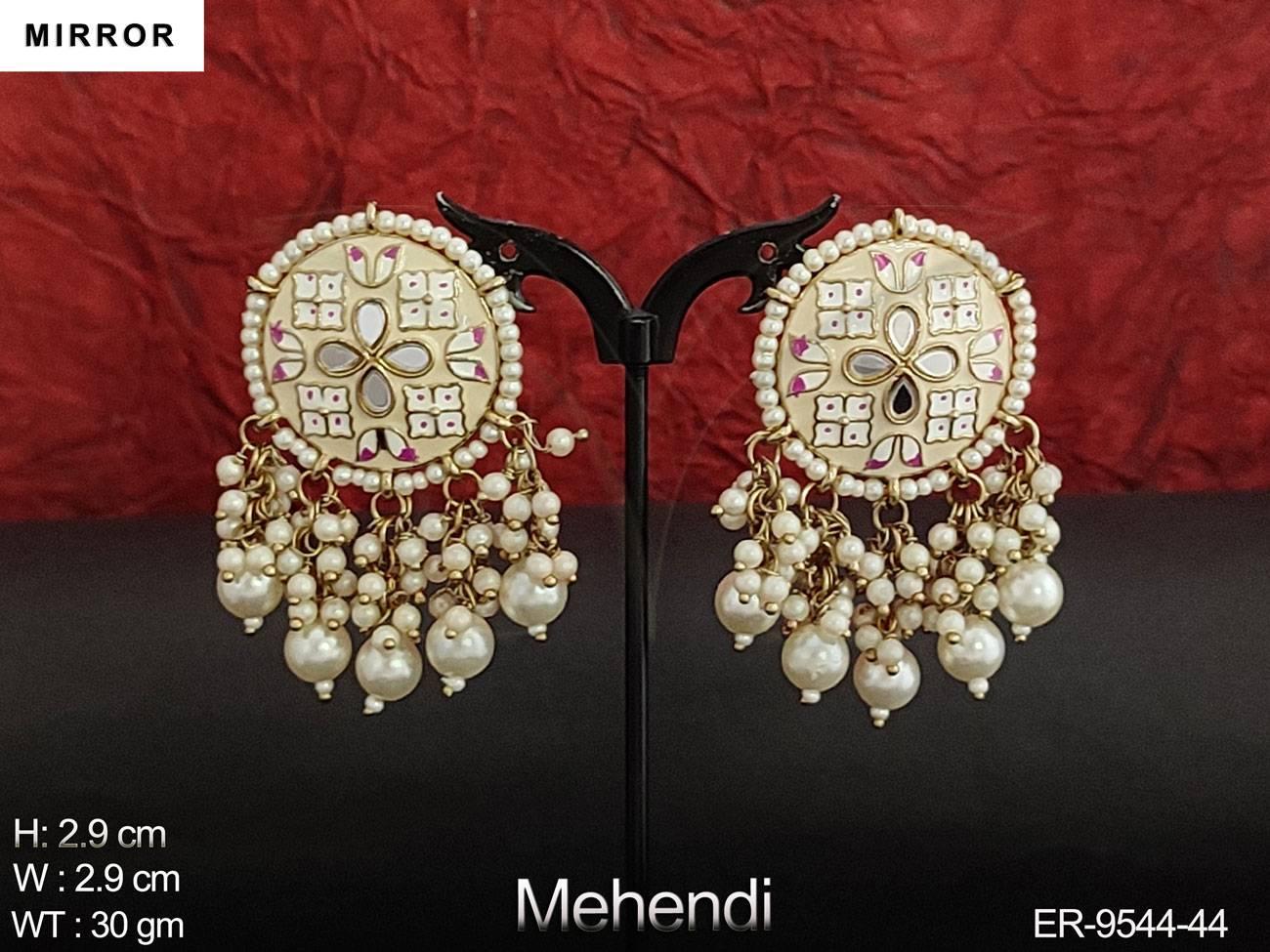 - Meenajari Design Clustered Pearl Designer Party wear Mirror Earring