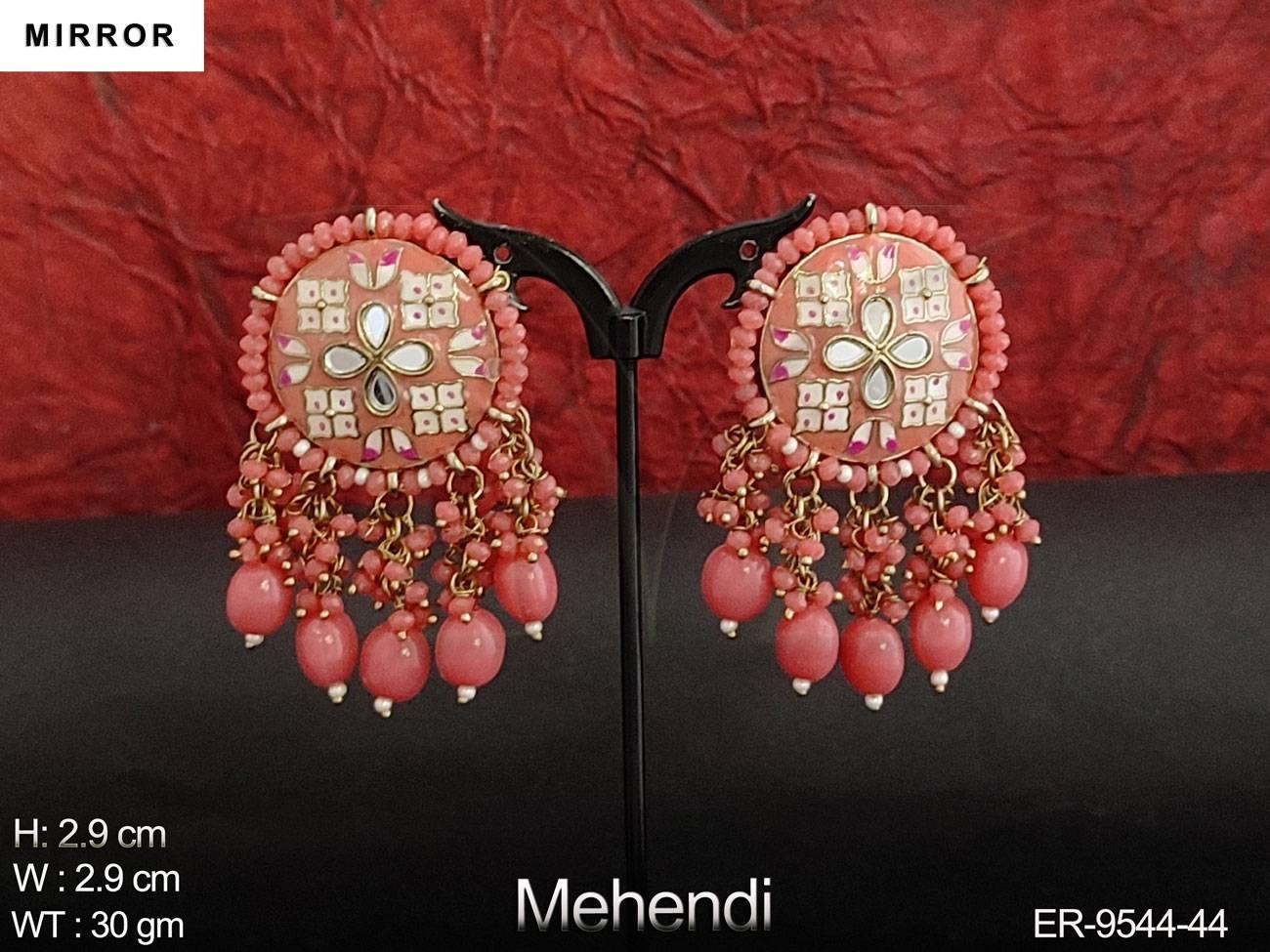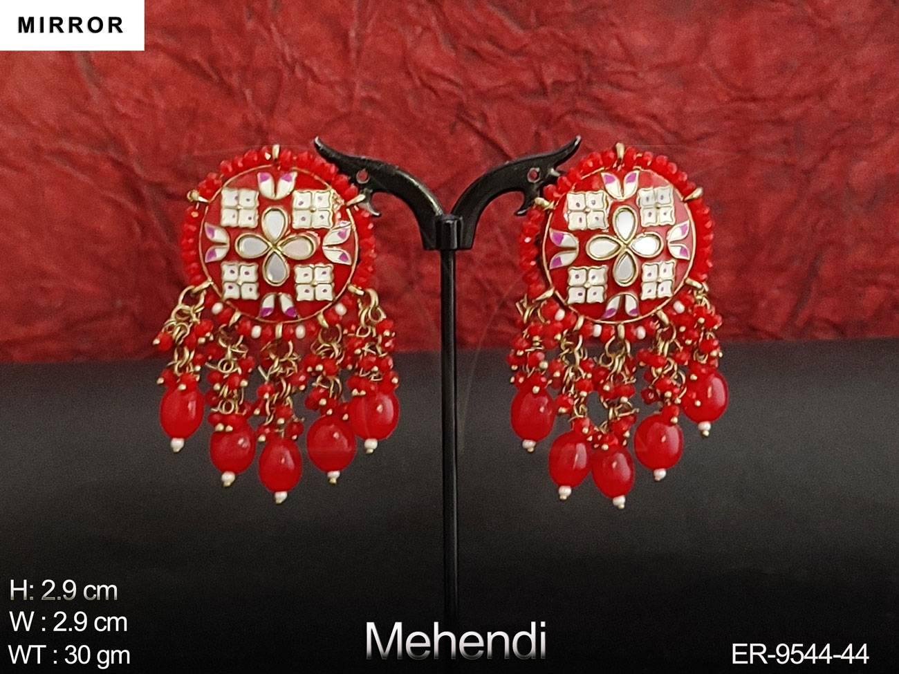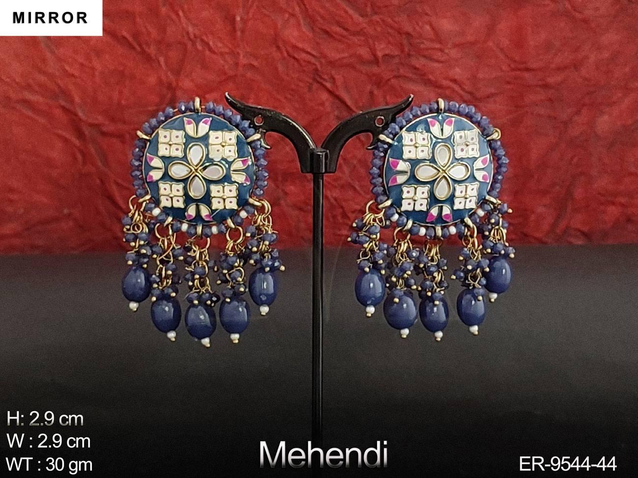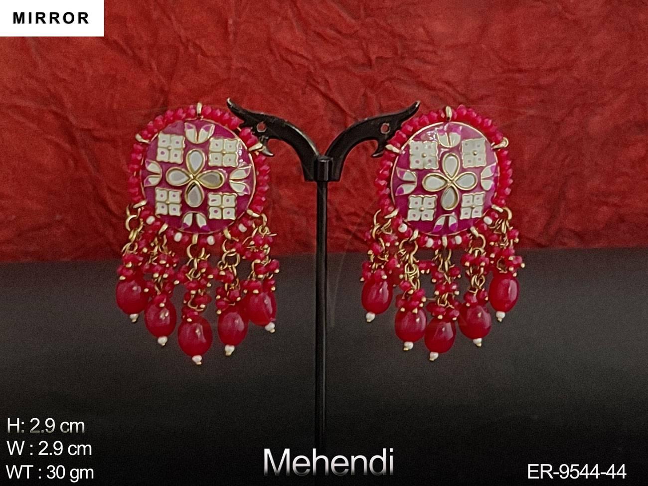 - Meenajari Design Clustered Pearl Designer Party wear Mirror Earring