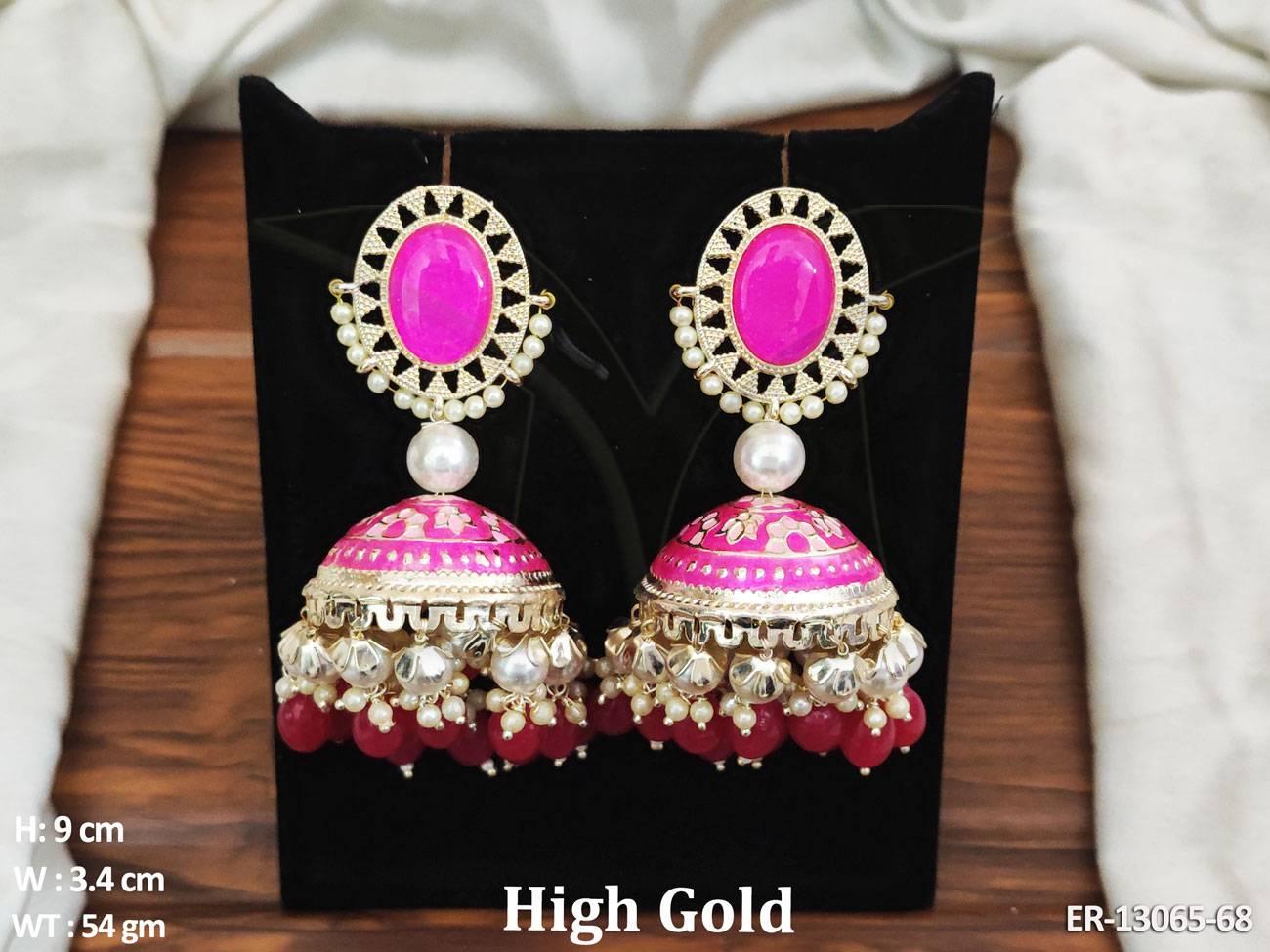 - Meenakari Design High Gold Polish Fancy Style Party wear Meenakari Jumka Earring