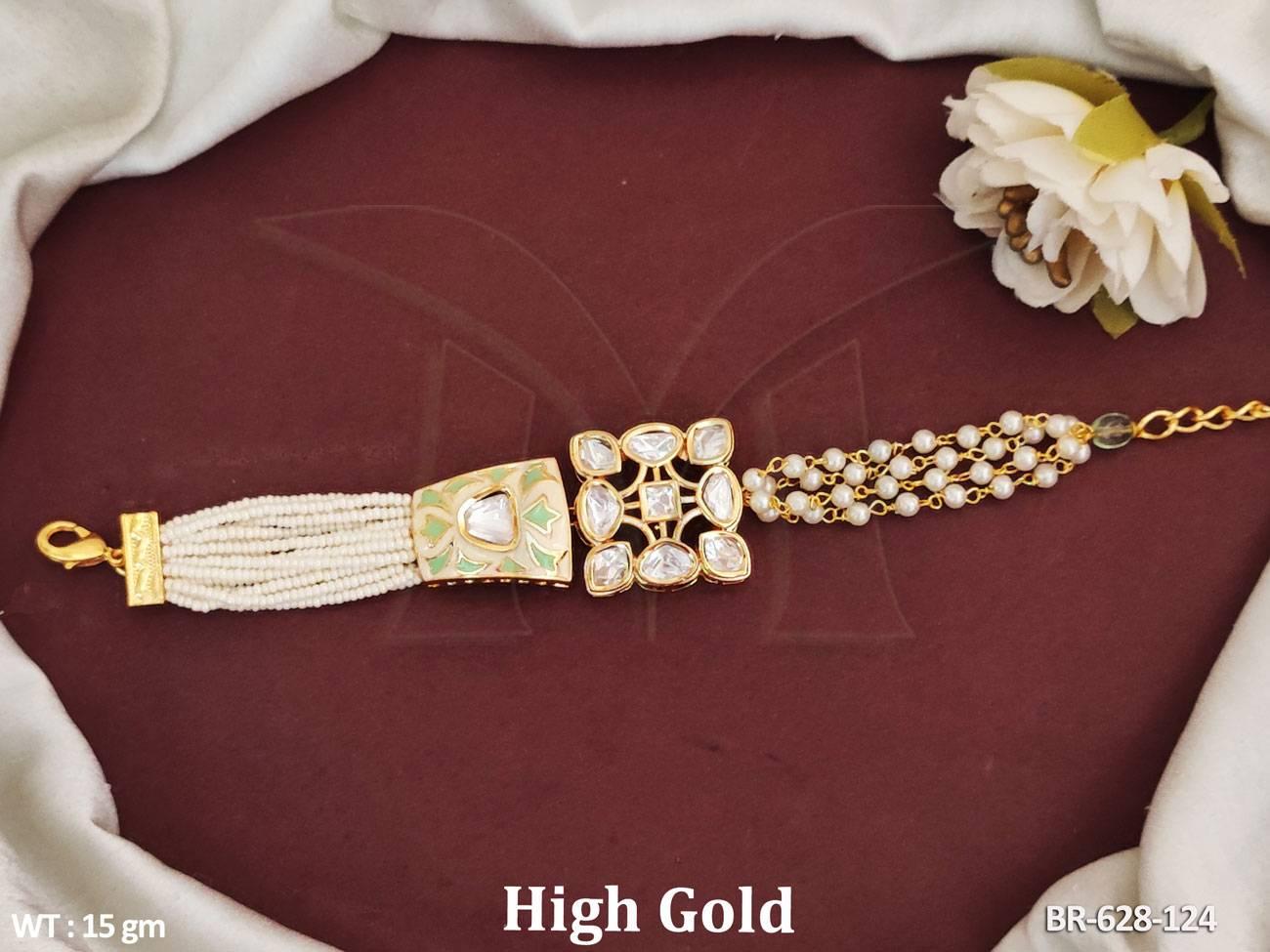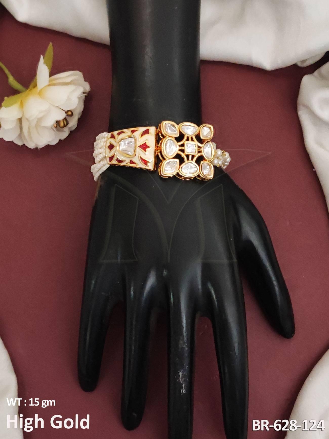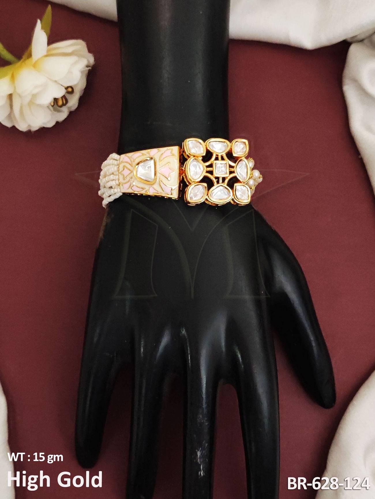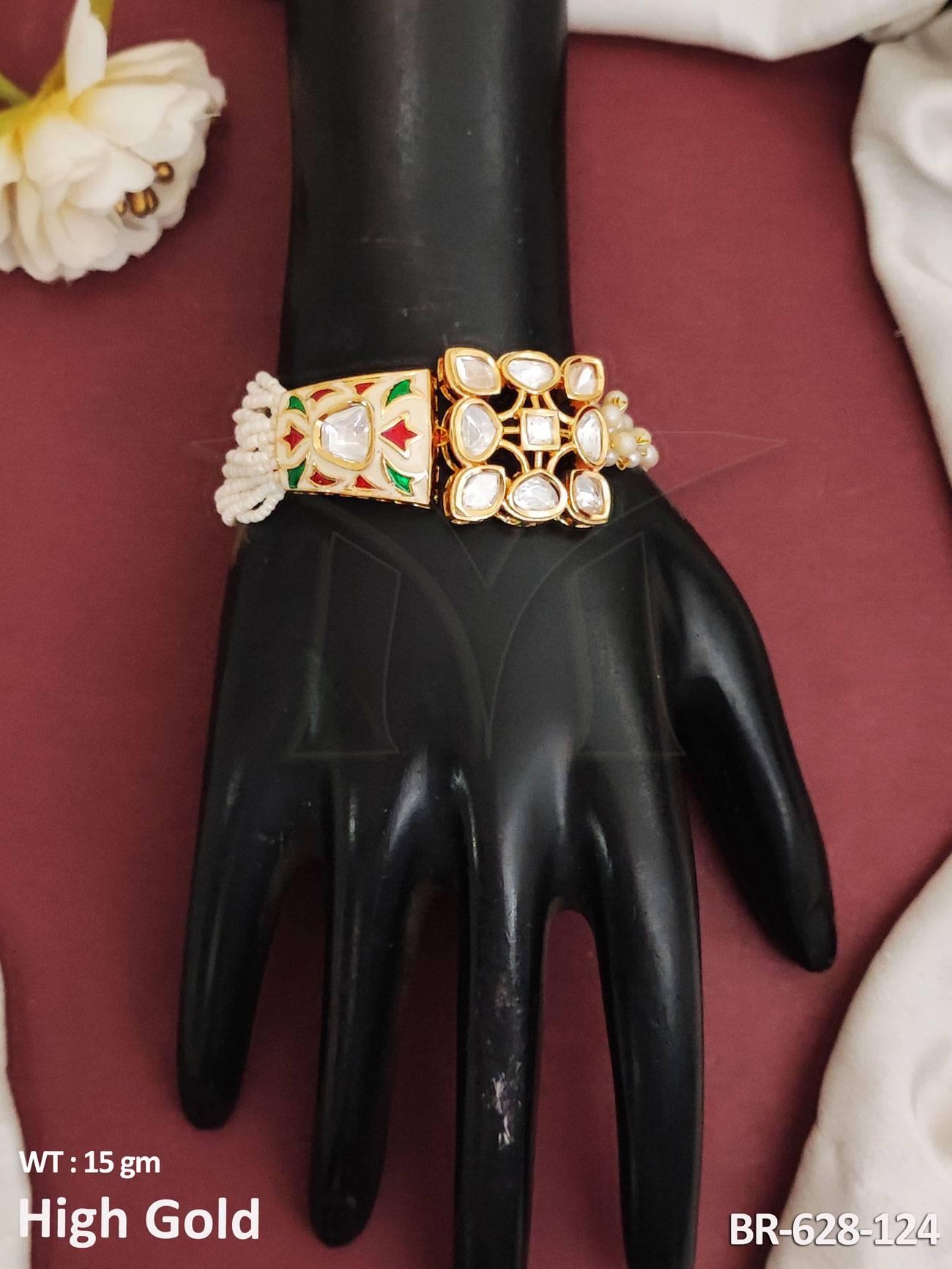 - Meenakari Design High Gold Polish Party Wear Kundan Bracelate