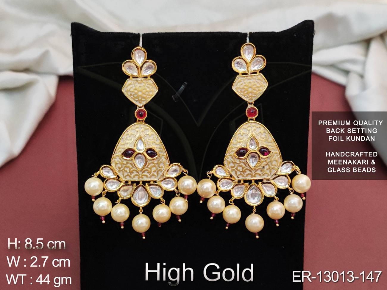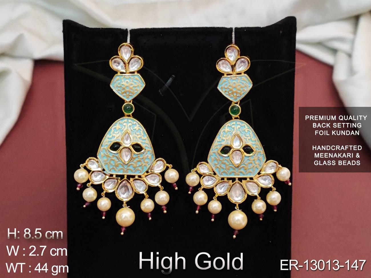 2. Meenakari Design Oval Shape Kundan Stones High Gold Polish Kundan Earrings