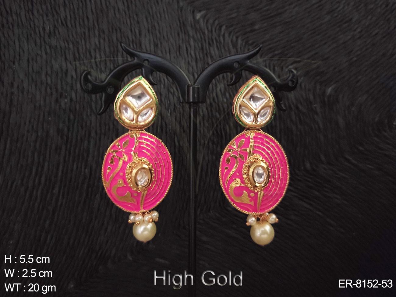 - Oval Shape Gold Polished Meenakari Earring