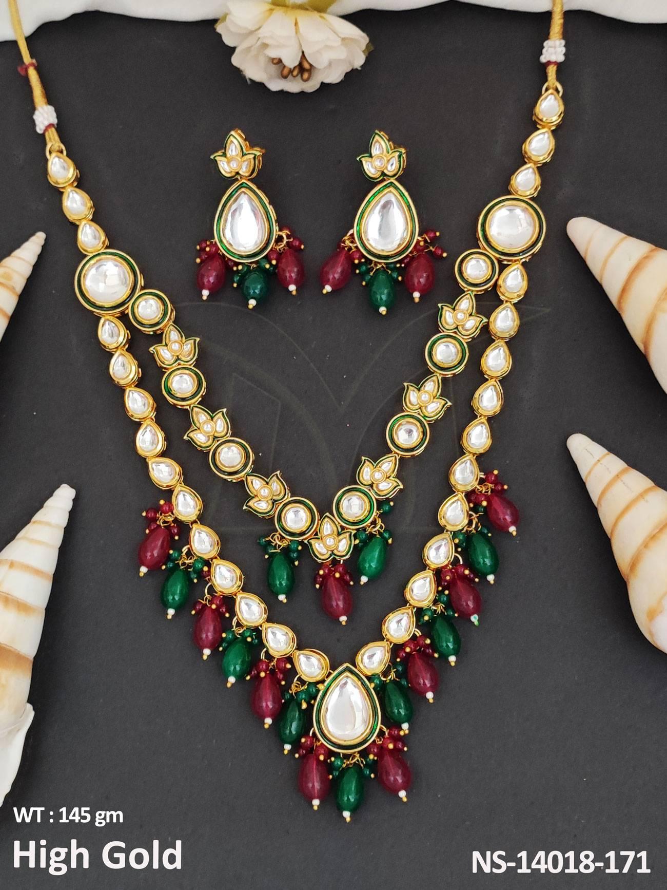 - Oval Shape Stones High Gold Polish Kundan Party Wear Necklace Set
