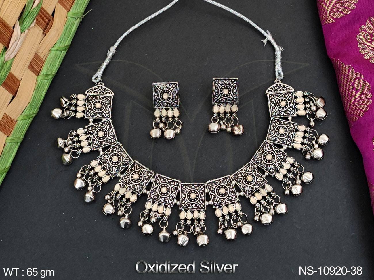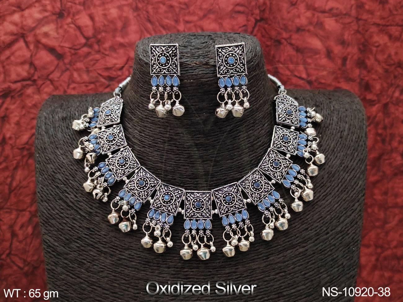 2. Oxidised Silver Fancy Style Antique Oxidised Jewellery Beautiful Short Necklace Set