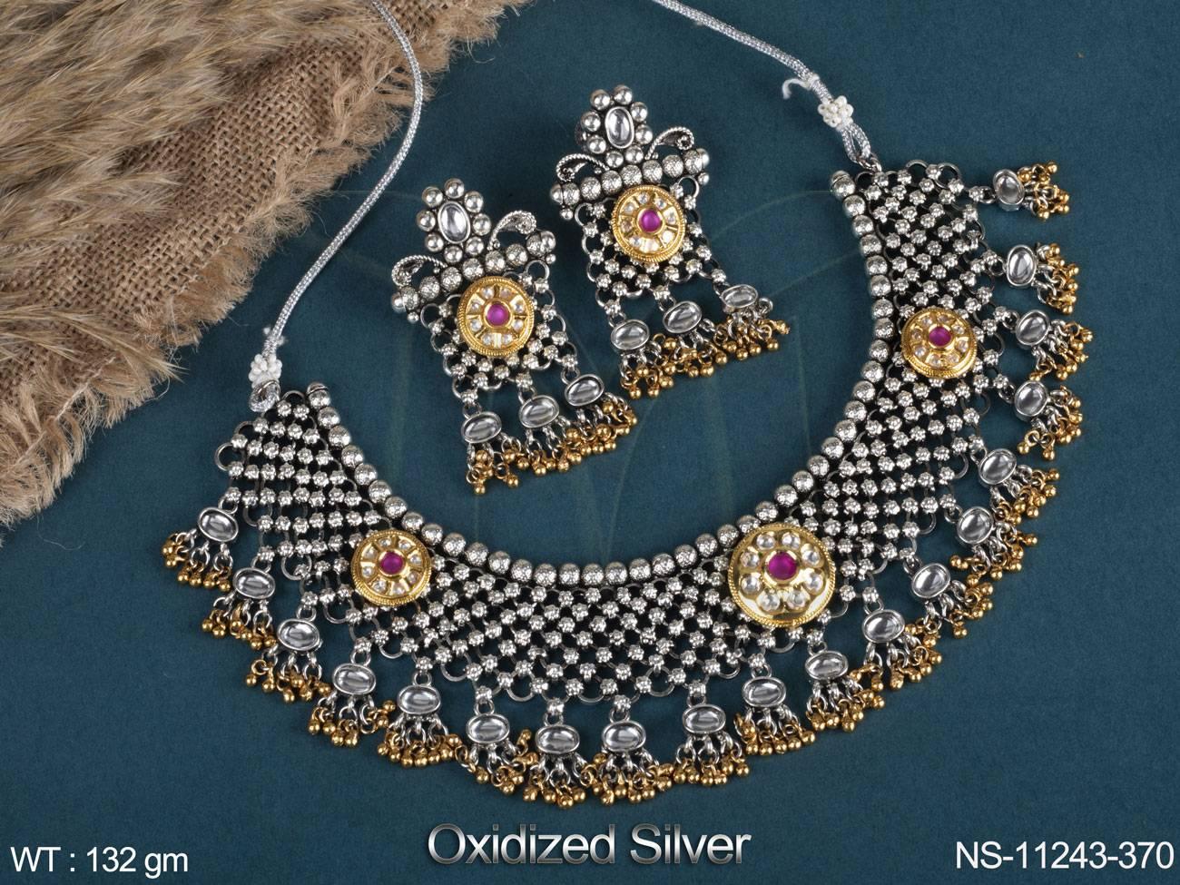 - Oxidised Silver Polish Fancy Style Party wear Beautiful Oxidised Jewellery Heavy choker Necklace