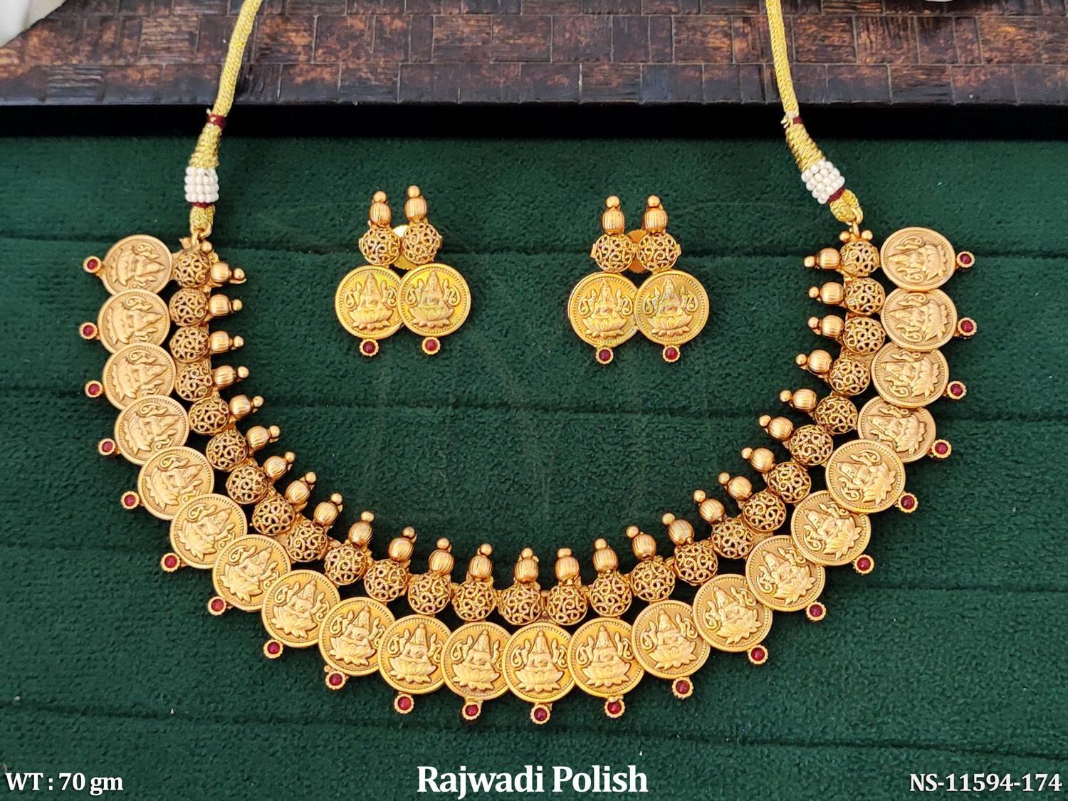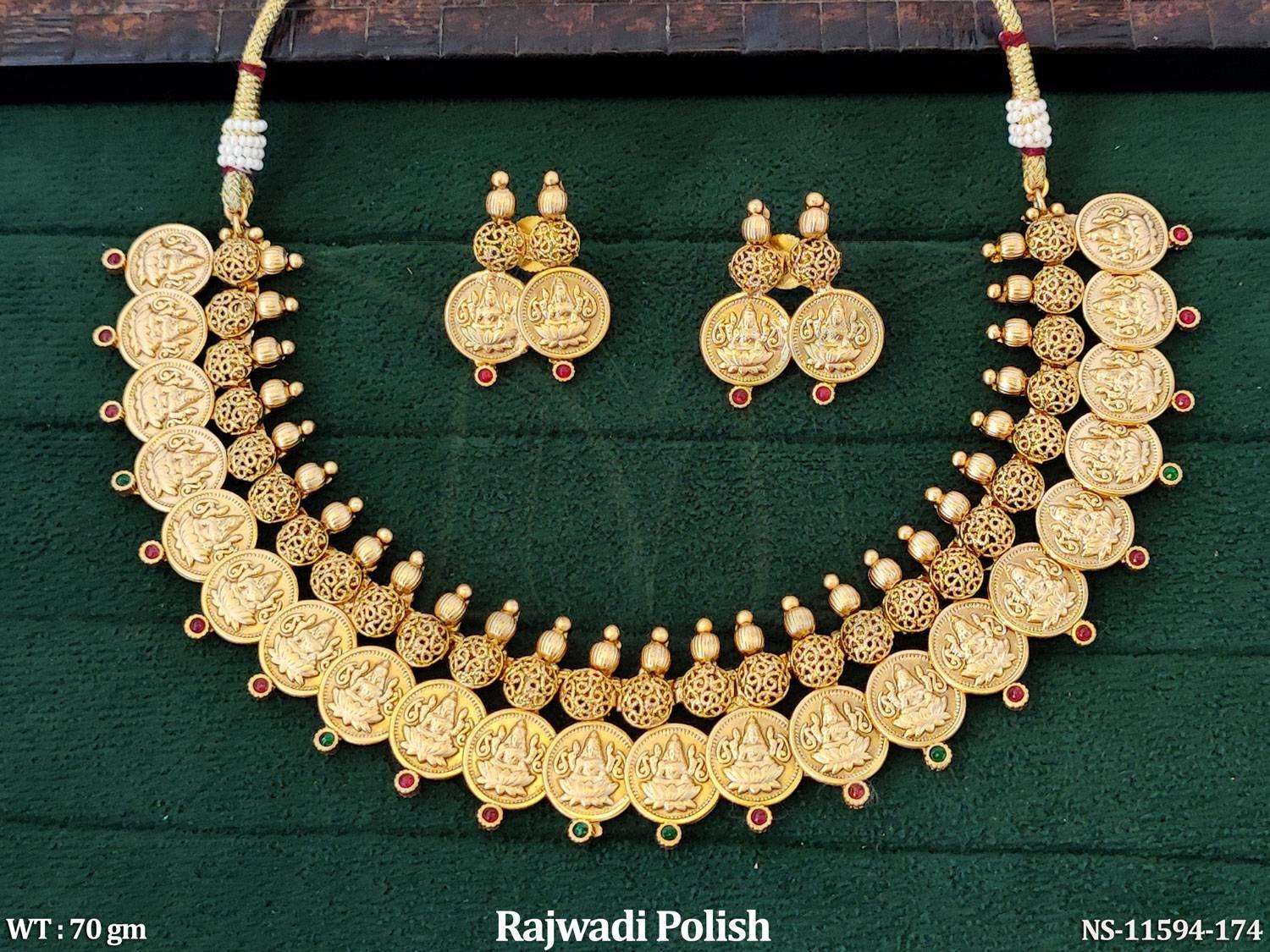 - Rajwadi Polish Designer Laxmi Coin Design Party wear Temple Short Necklace Set