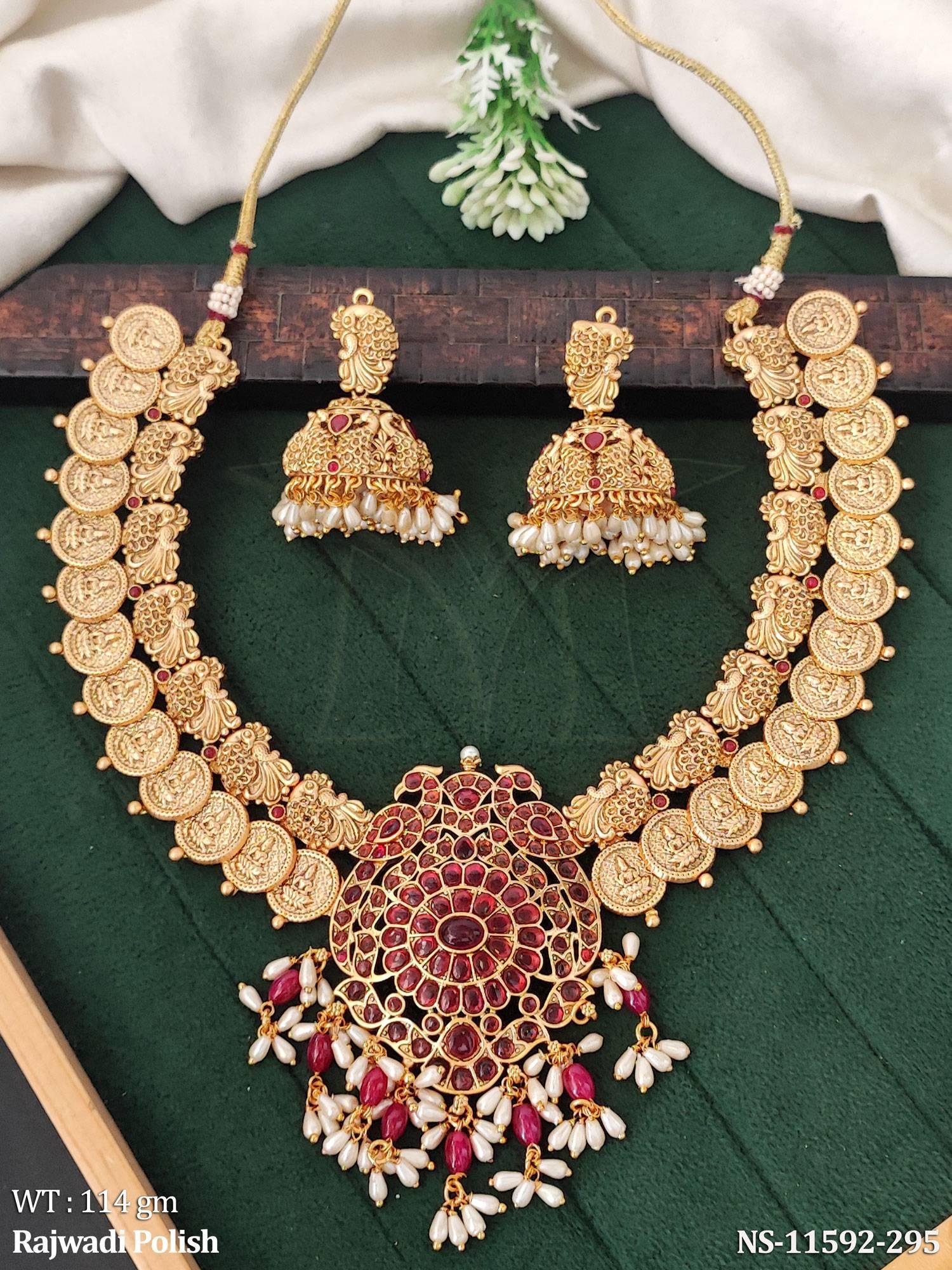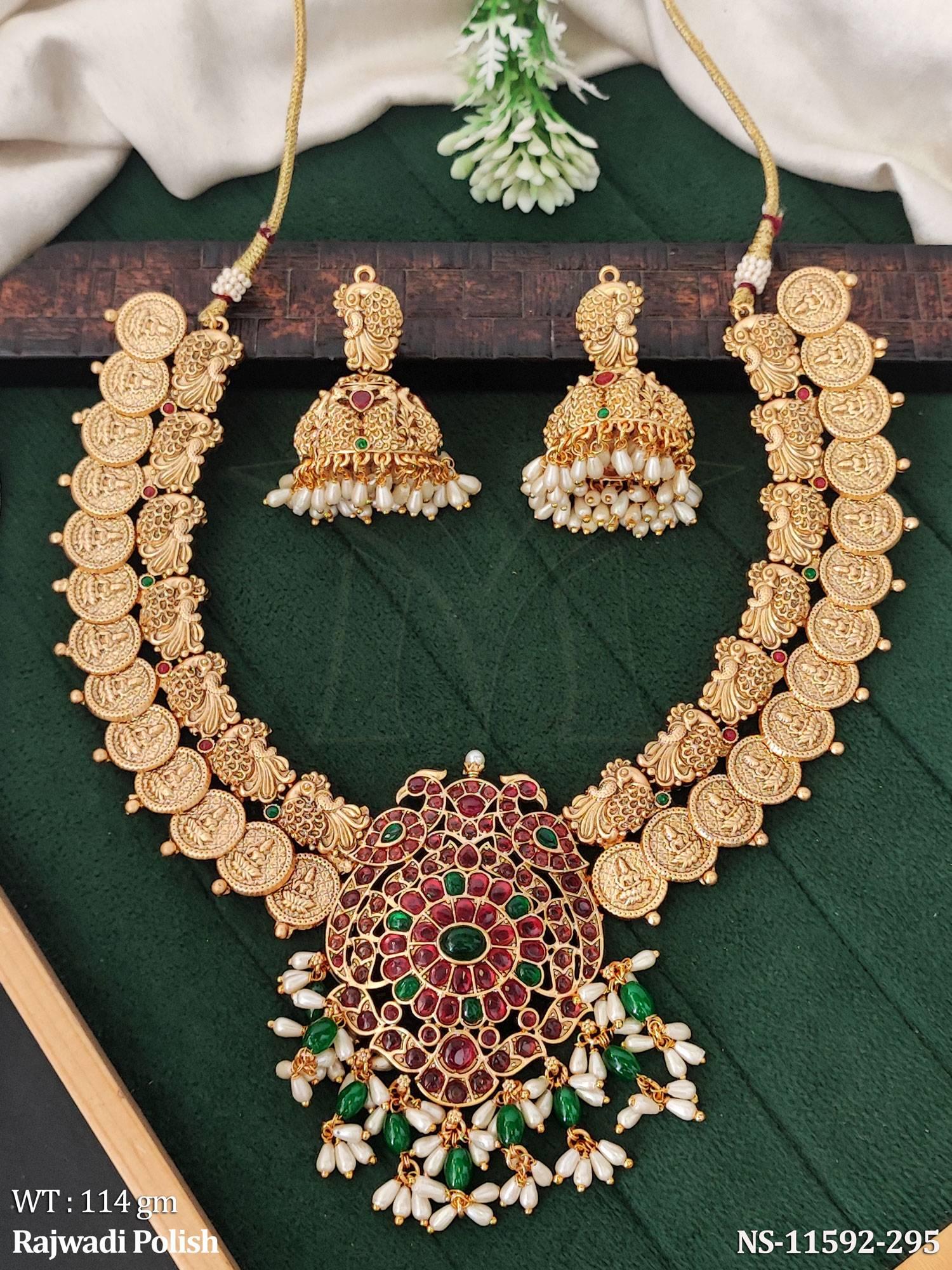 - Rajwadi Polish Laxmi Design Party wear Beautiful Temple Jewellery Coin Necklace Set