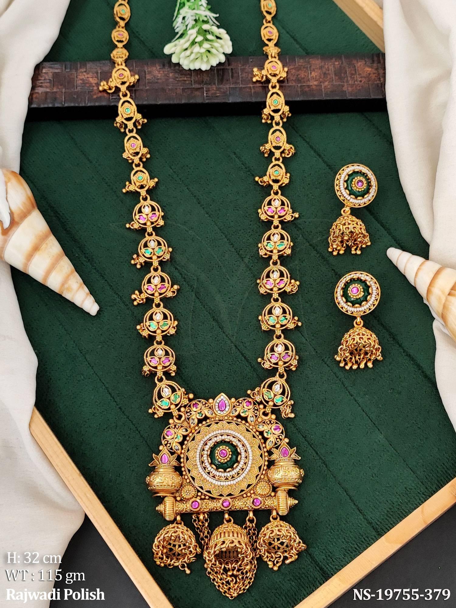 - Rajwadi Polish Traditional Long Necklace Set with Jhumka Earrings