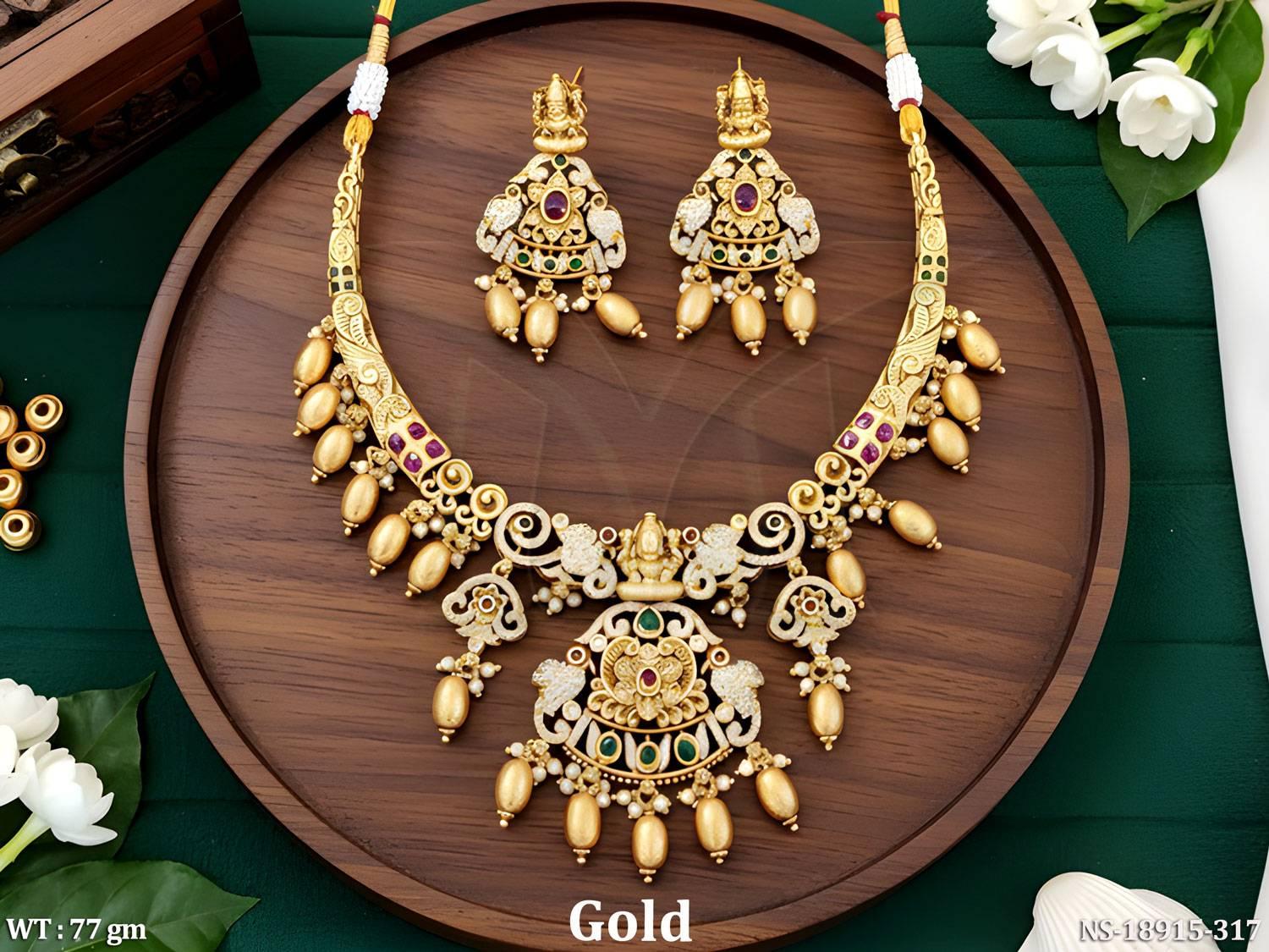 Temple Designer Gold Clustered Pearl Short Necklace Set