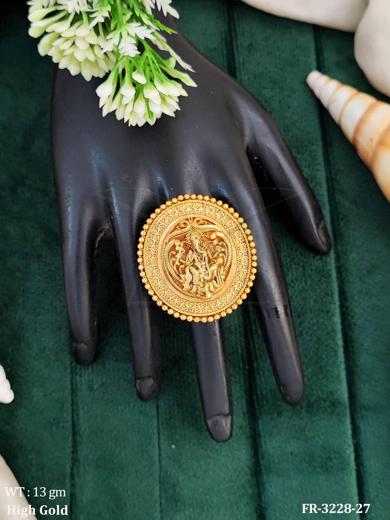 - Temple High Gold Polish Fancy Style God Figure Finger Rings