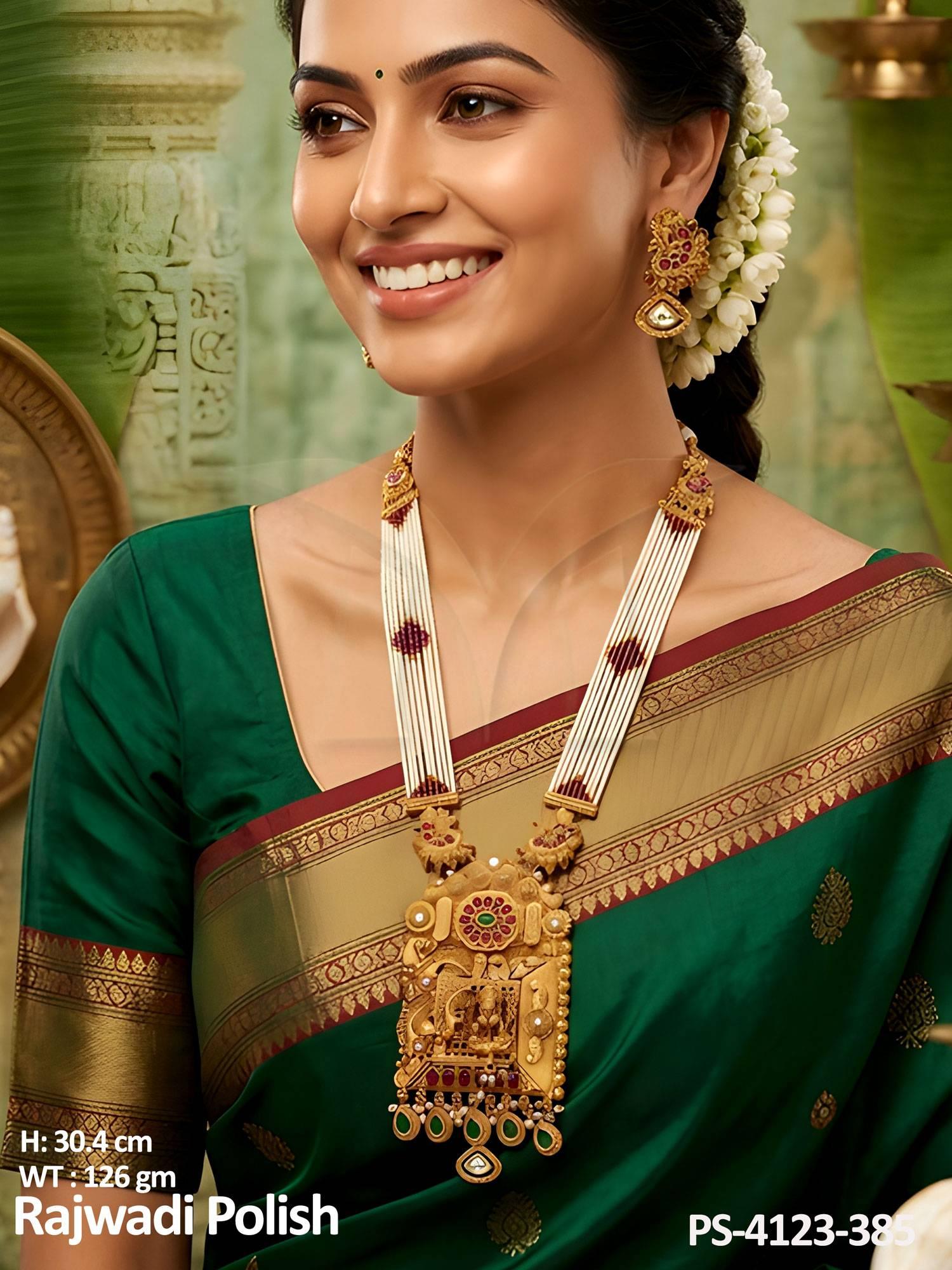 - Temple Jewellery Rajwadi Polish Fancy Designer Pendant set