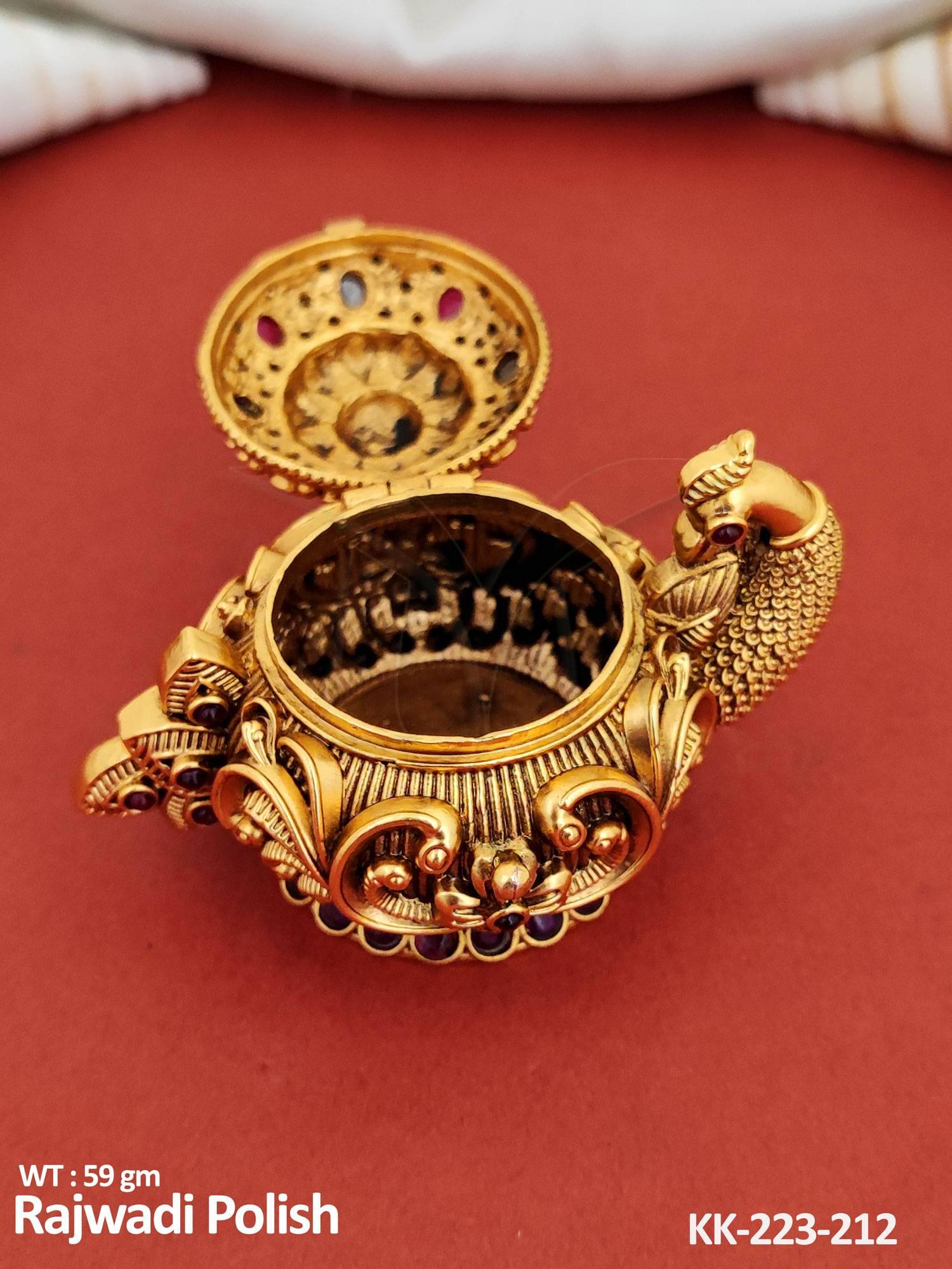 2. Temple Jewellery Unique Design Rajwadi Polish Peacock Design Sindoor Box