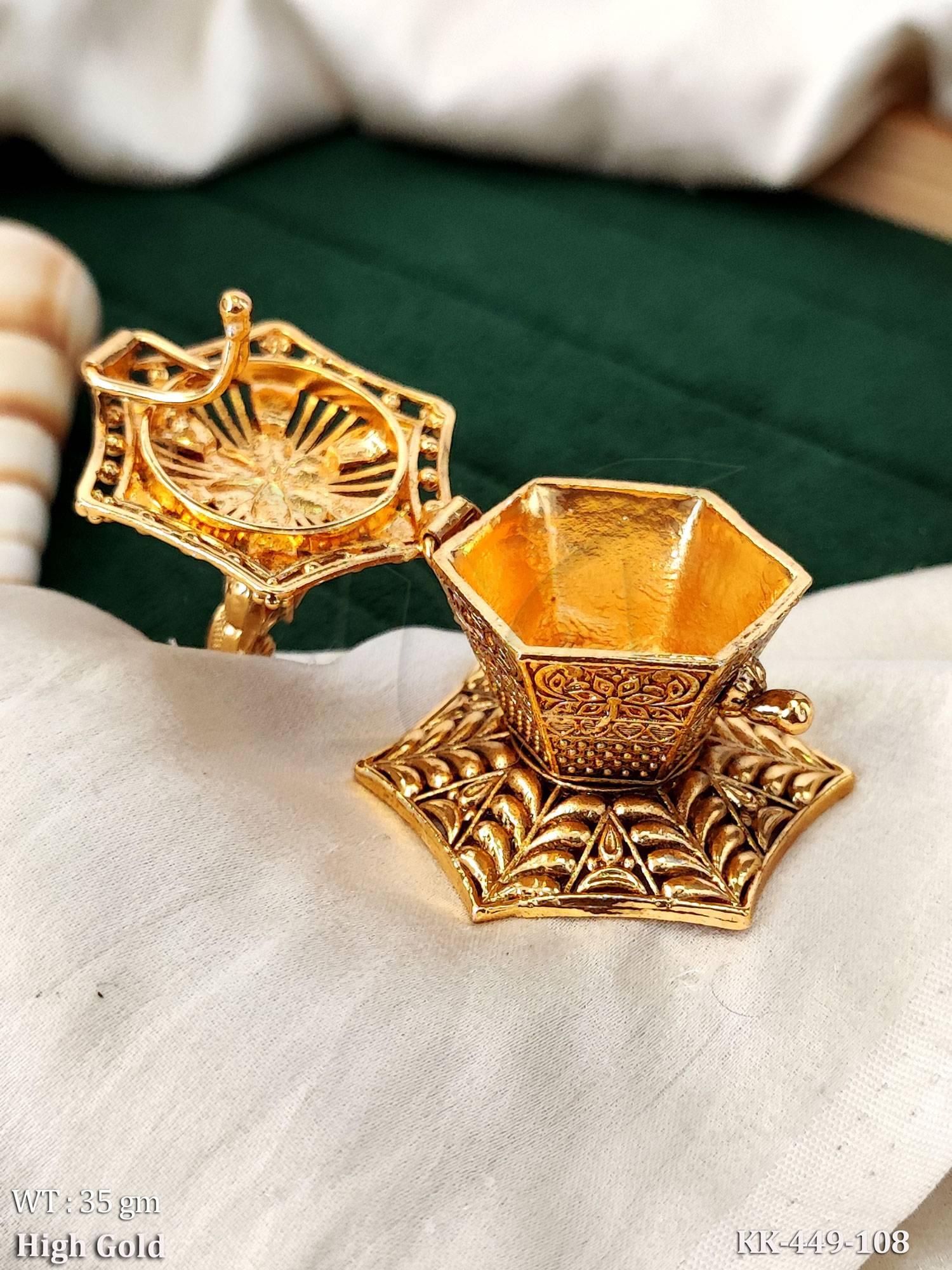 - Temple Peacock Design Kumkum Sindoor Box High Gold