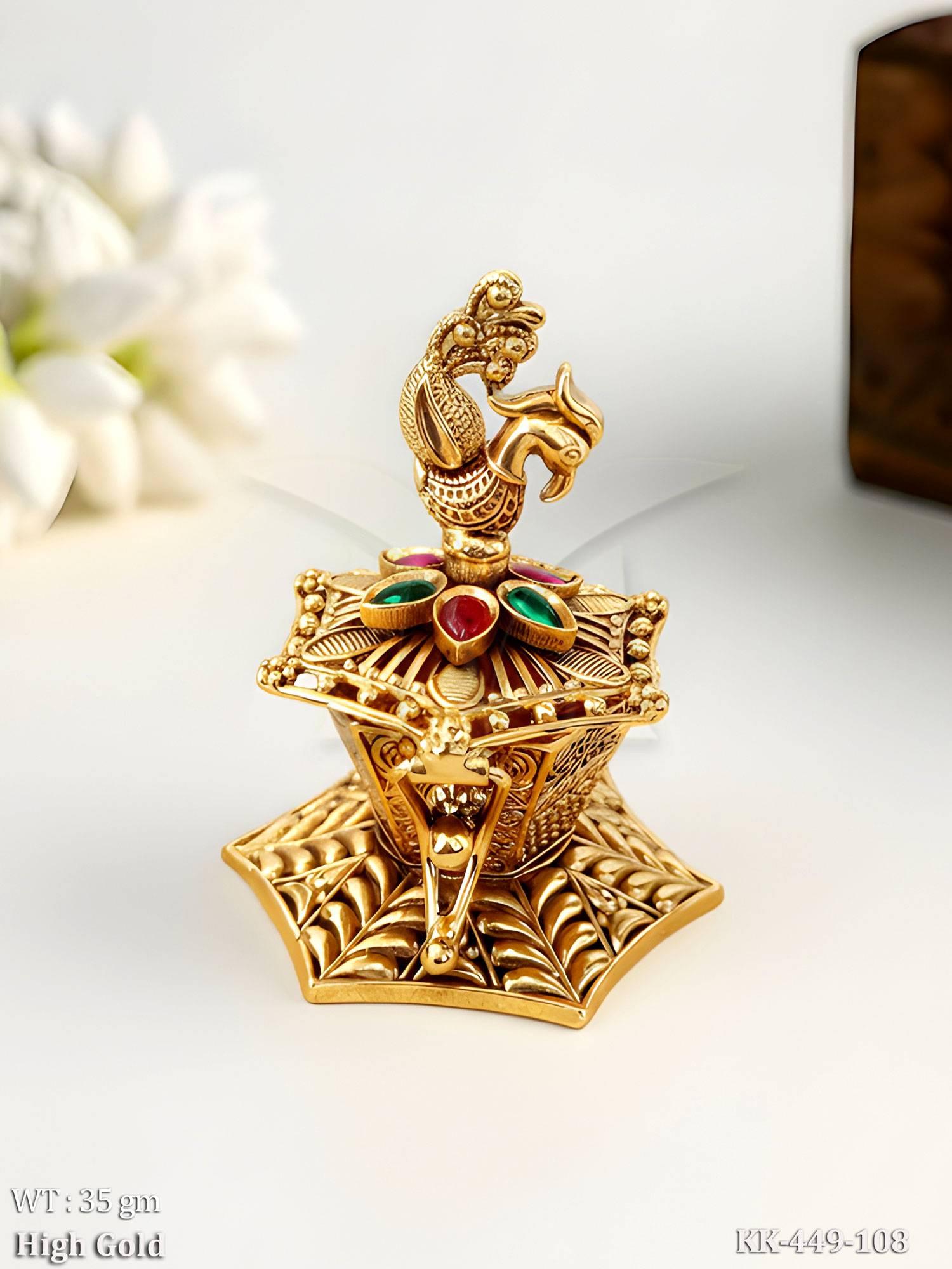Temple Peacock Design Kumkum Sindoor Box High Gold