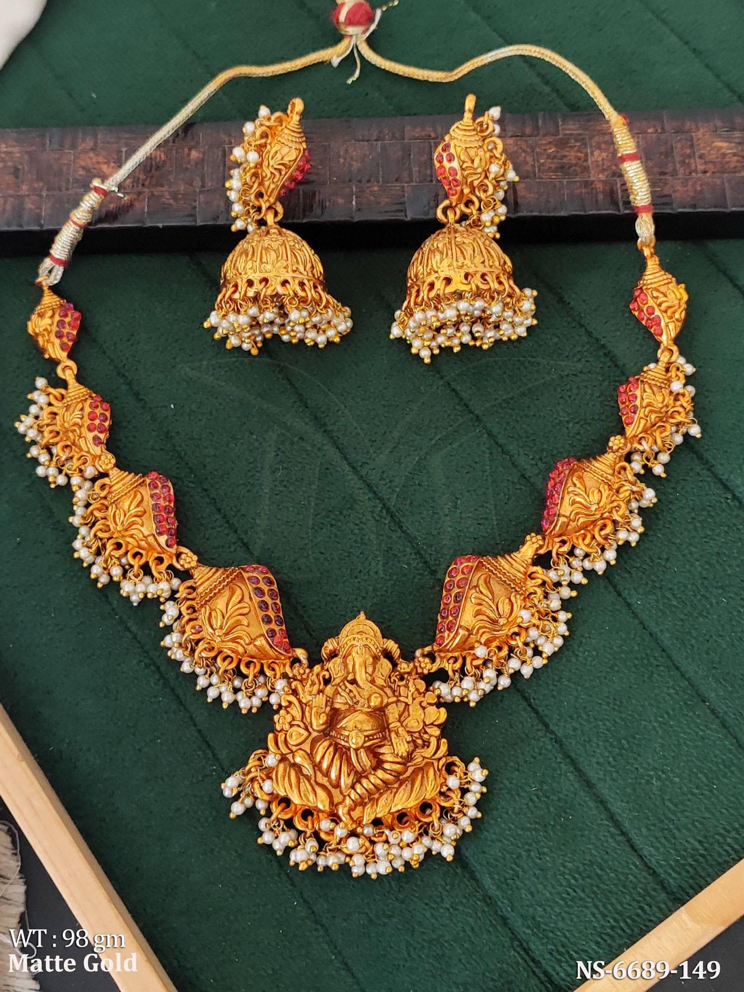 - Temple traditional Matte Gold Necklace