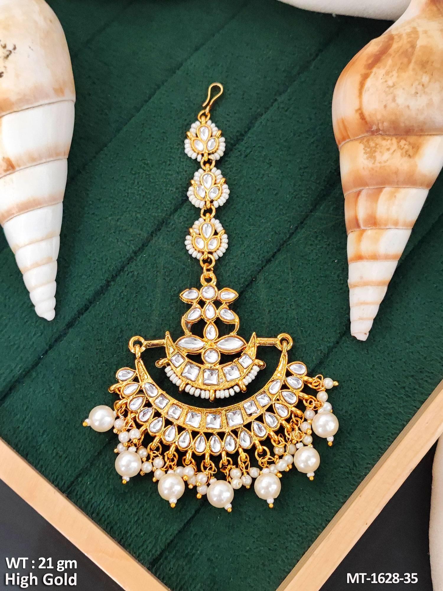 - Traditional Kundan Stone Maang Tikka with Pearls