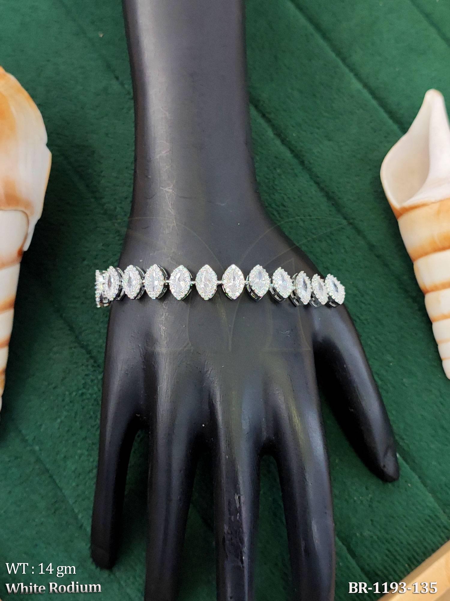 - White Rodium American Diamond Party Wear Bracelet